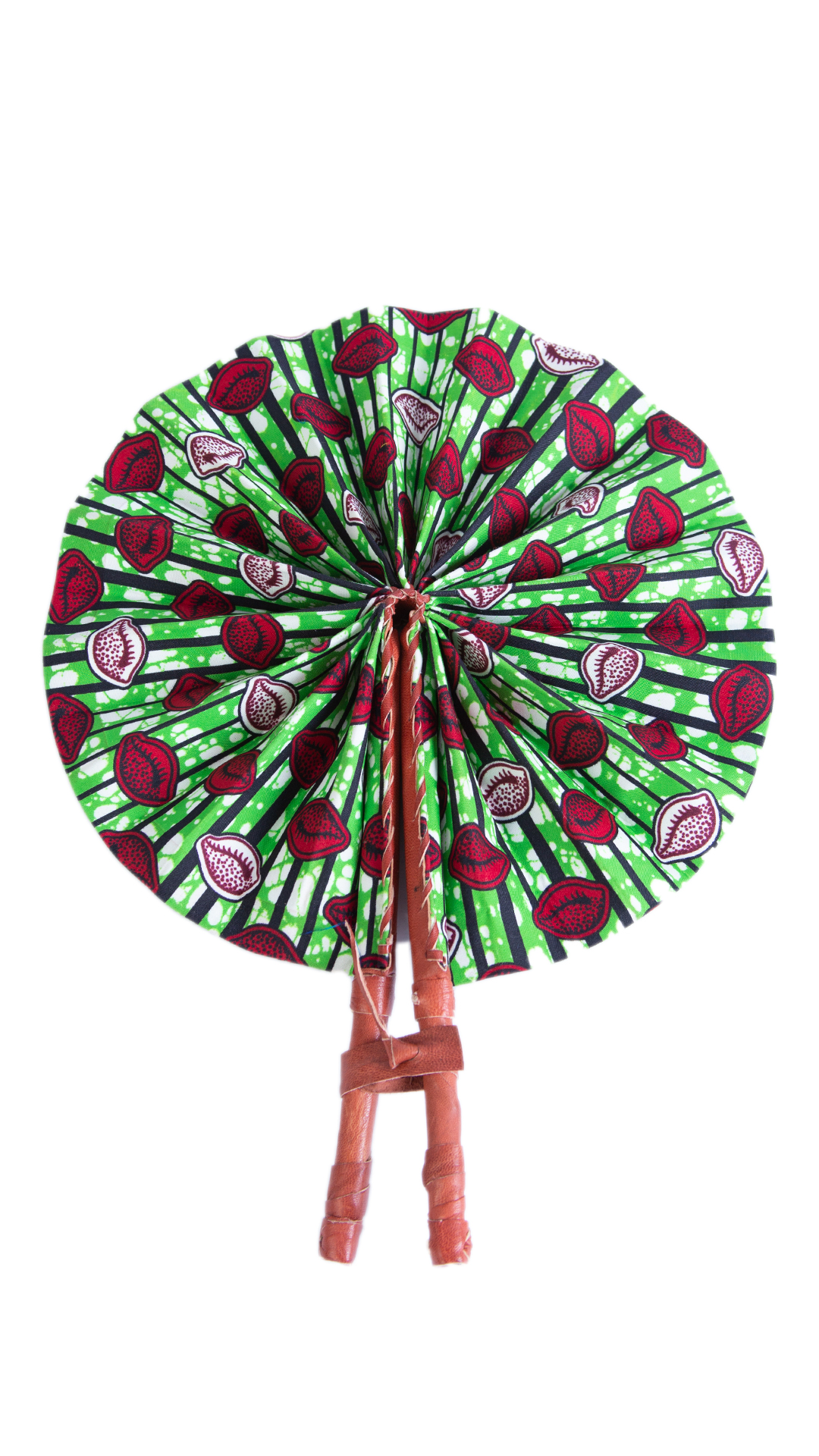 Whether you’re looking to beat the heat in style or make a bold fashion statement, our Abstract Red Cowrie Shell Ankara Print Round Closable Fan is the perfect choice.
