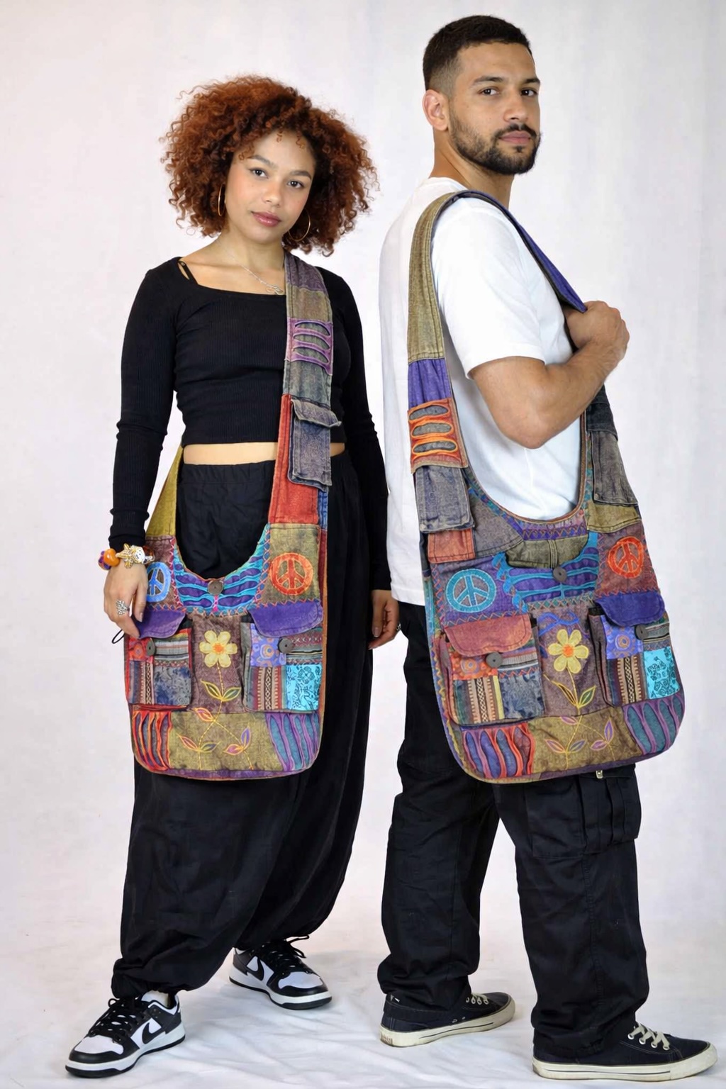 Our Hippie style Adese Patchwork Bag is the perfect gift for a loved one or even to treat yourself. The bag is a unique and stylish with its multi-colour patchwork design. Moreover, the bag has a pocket on the strap and two at the front of the bag for extra storage. In addition the bag has a beautiful design on its front.