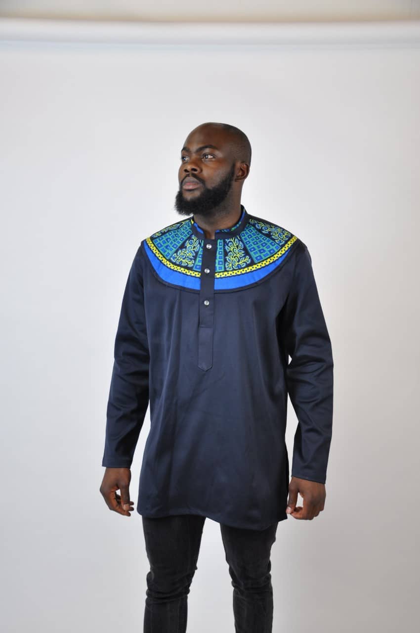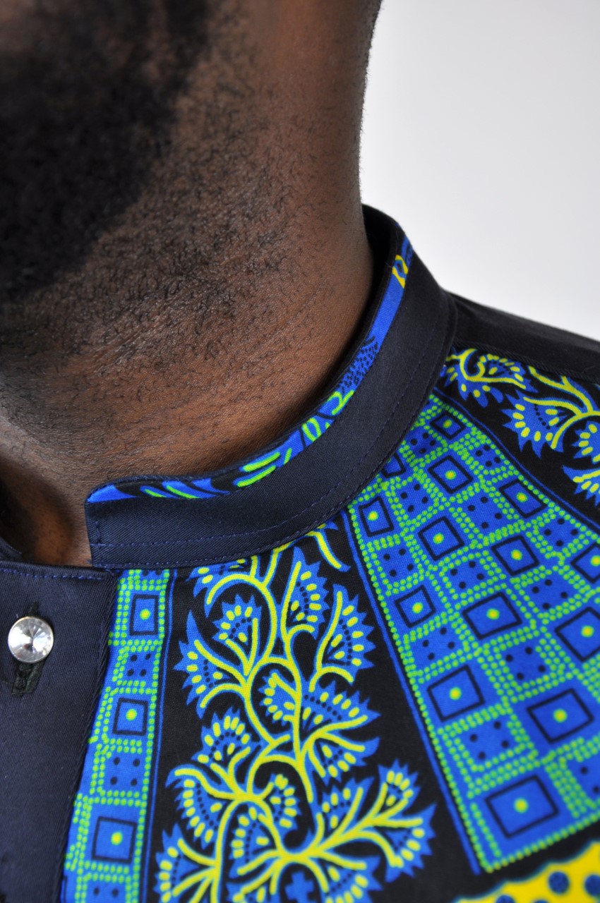 - Colour: Navy Blue Polished cotton / Blue & Yellow Ankara Fabric