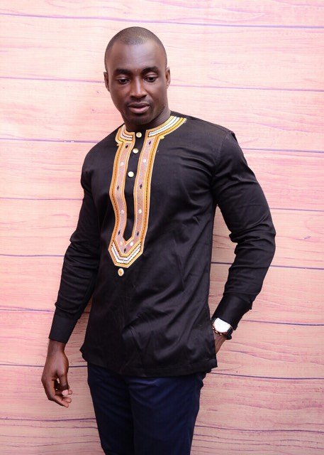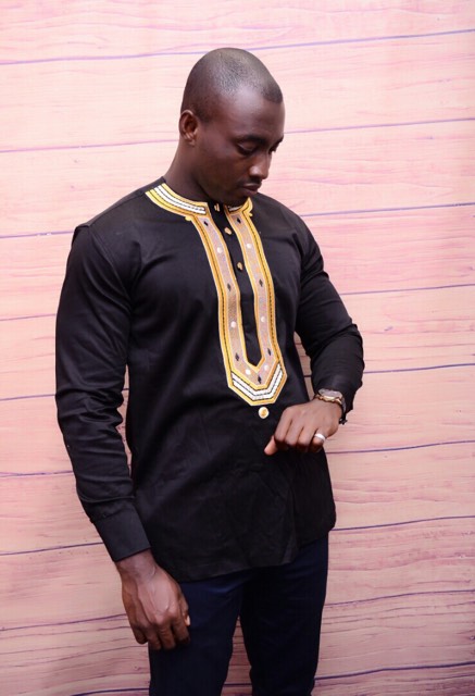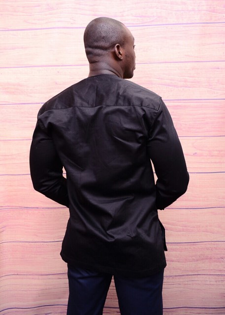 You are sure to be the best dressed at any occasion in this Afolabi Mens Black Polish Cotton Shirt With Gold Embroidery shirt.It has a very comfortable fit and unique smart embroidery on the front.It can be styled with Smart shoes and trousers for a finished look.