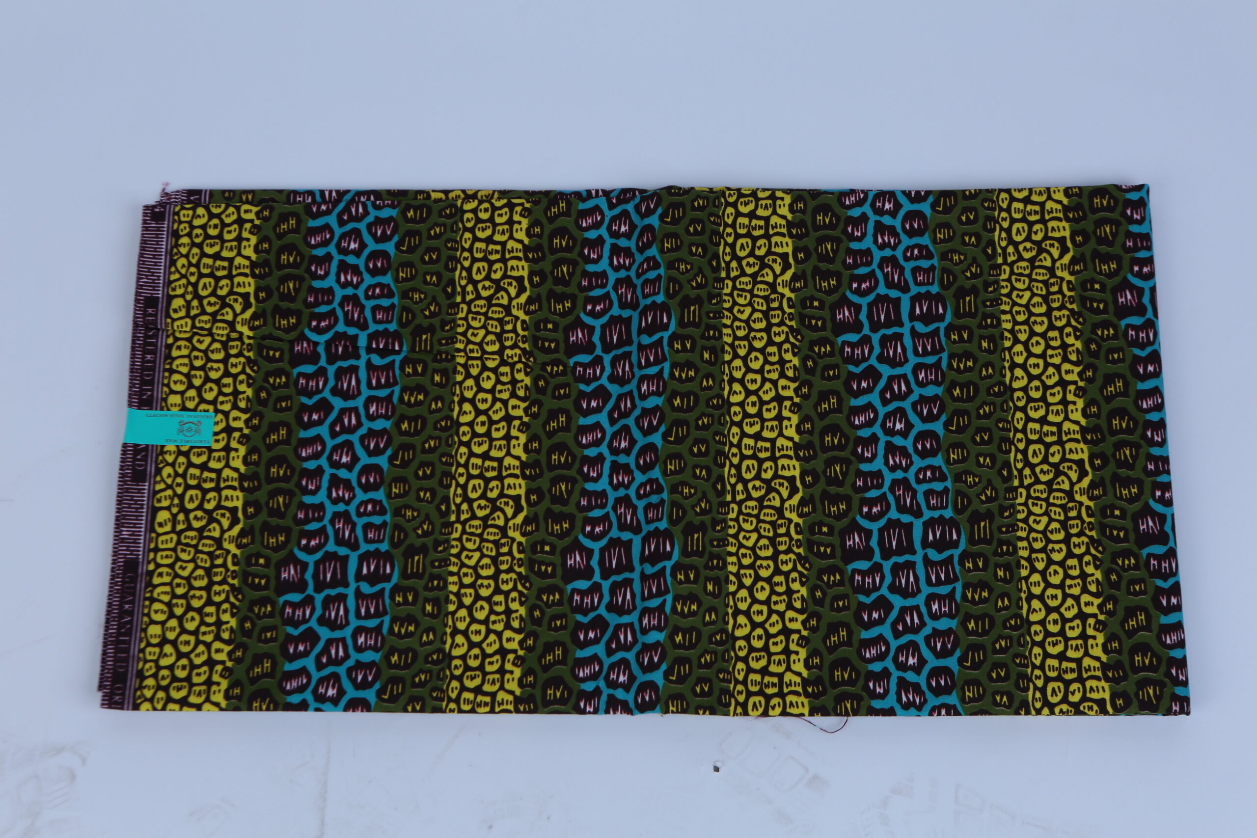 This Ava Authentic African Ankara Fabric/ Ankara Pattern makes the perfect fabric for dress making or would make a perfect table cloth or can be used as a head wrap! It features a beautiful leopard pattern that is sure to help you stand out from the crowd. The beautiful Vibrant Green, blue and yellow pattern comes together beautifully on top of the background, making this pattern stand out.
