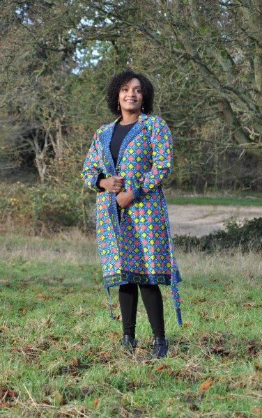 This beautiful African Ankara Blue & Multi Midi Length Tie-up Coat is lovely and so easy to dress up or down. It can be thrown over a top and jeans or be dressed up and worn over a dress.