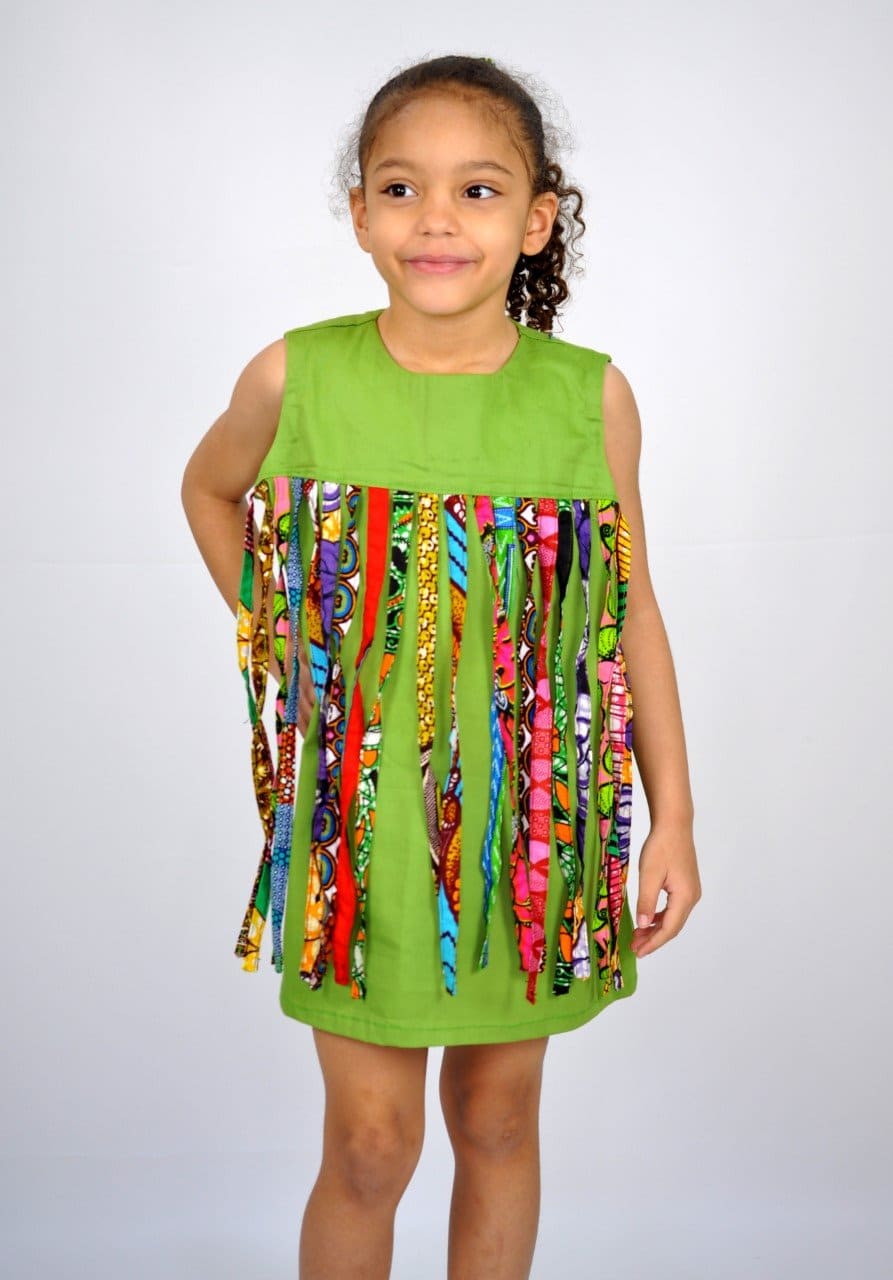 Our beautiful African Ankara Kids Tassel Green Dress is perfect for summer, but it can also be worn in the winter with a long-sleeved top/jumper and some warm tights. This one-of-a-kind style is sure to draw attention and is comfortable for children to wear on a variety of occasions.