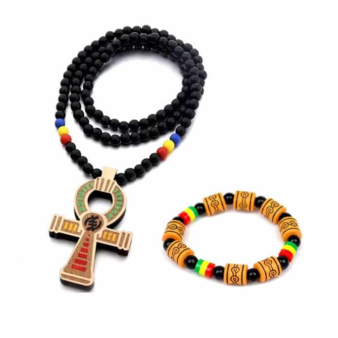 This gorgeous African Beaded Ankh Necklace & Bracelet Set makes the perfect gift for yourself or for that special person.The necklace and bracelet can be styled up or down with any outfits. The beaded colours make the sets Match and they compliment each other beautifully !Â