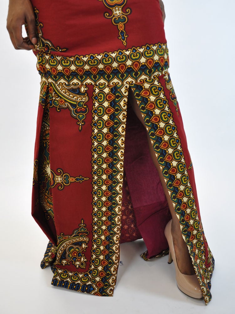 Looking for a statement dress? We have you covered with this special African Dashiki Fusion Flare Dress. This stunning, floor-length, silhouette dress with slit to front and rear radiates elegance and sophistication. The striking blend of colours and Dashiki print make it a perfect choice for evening wear, a prom, cocktail party or any special occasion or event. Definitely a showstopper!