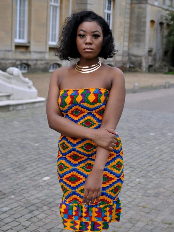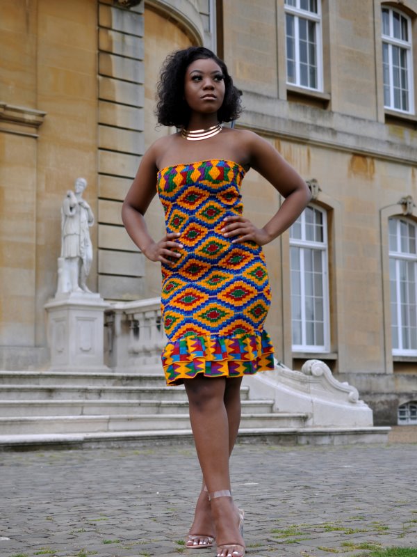 This colourful African Kente Print Bandeau Bodycon Dress is perfect for a party or night out with the girls.
