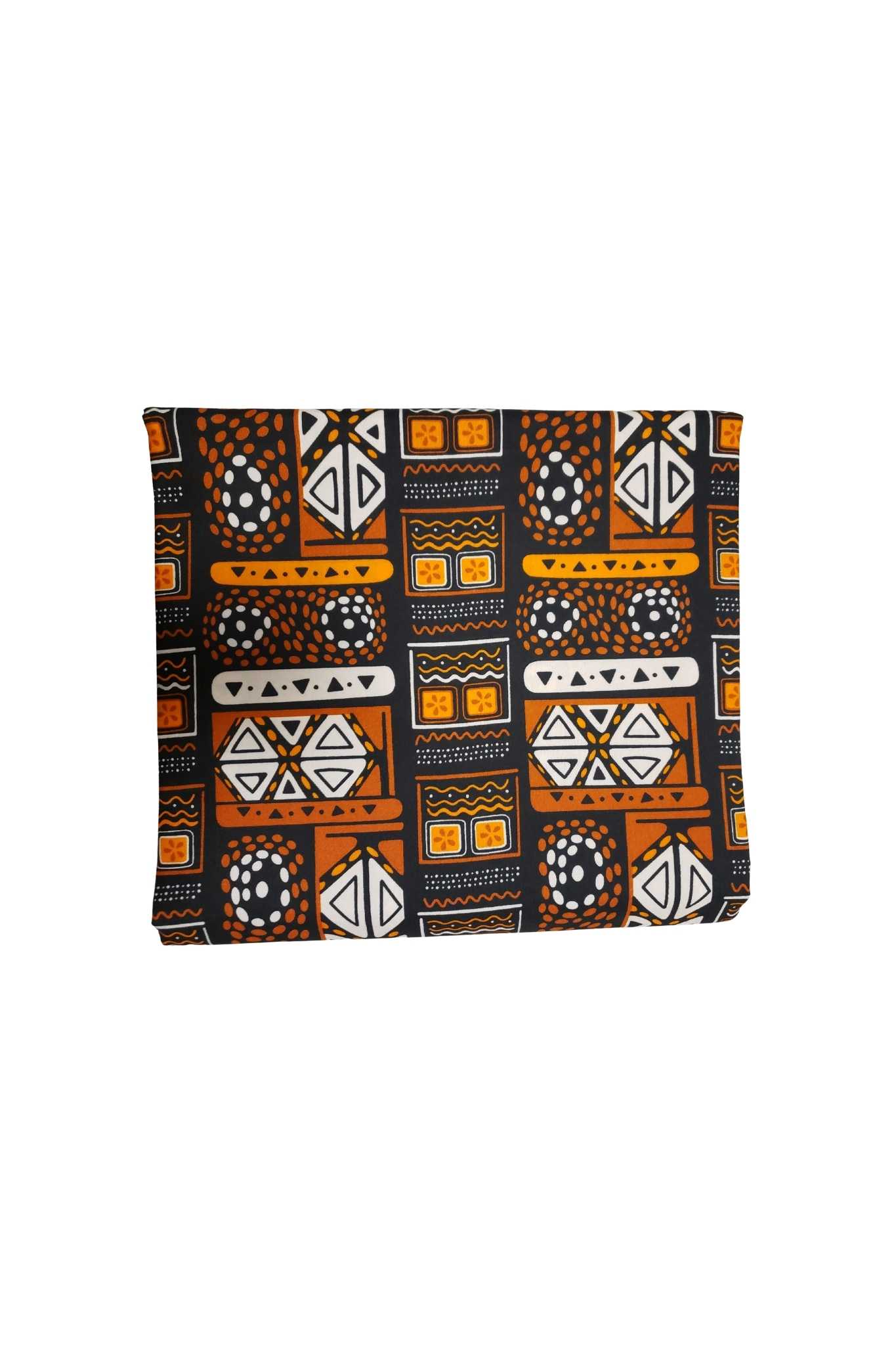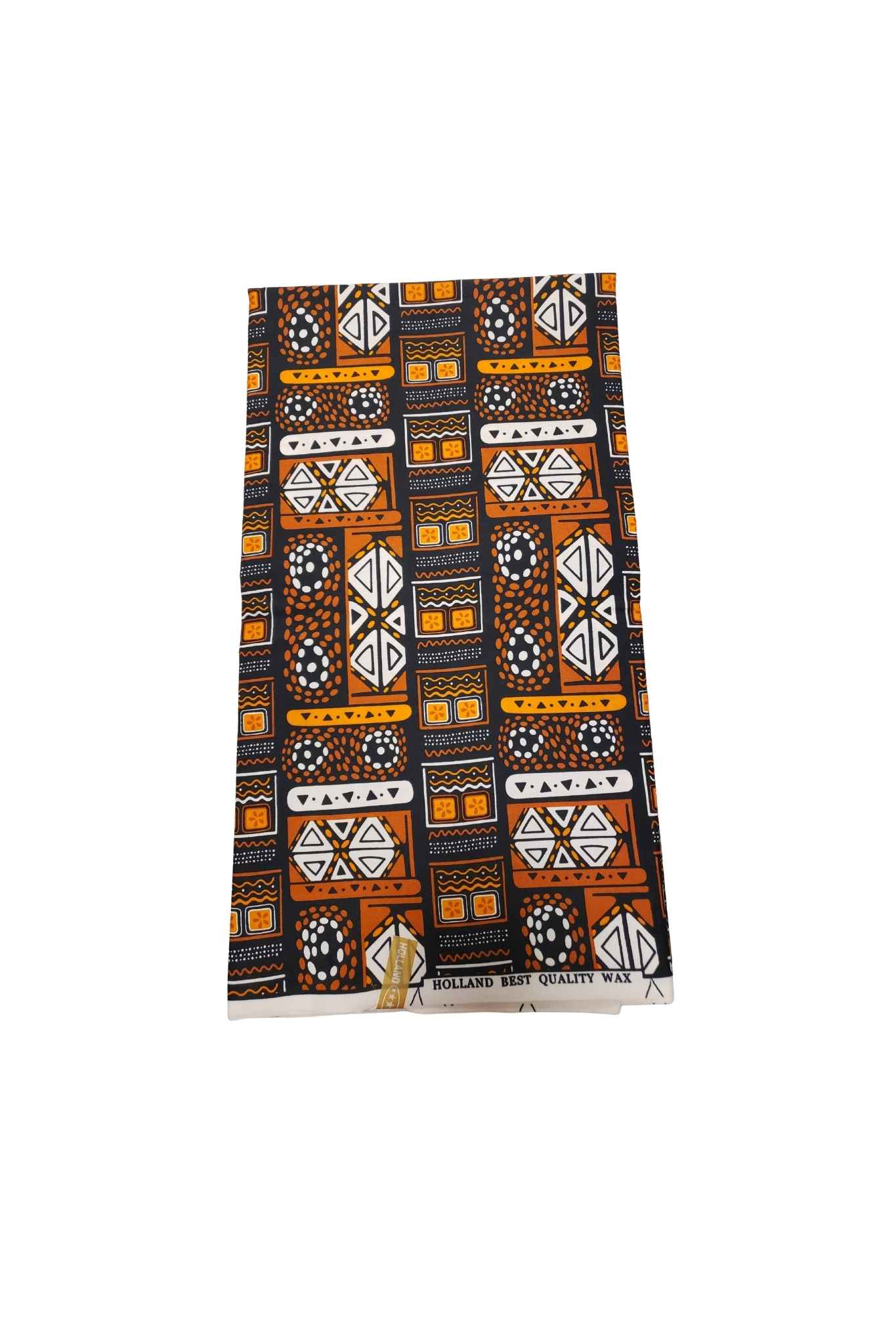 African Print Fabric- Orange, Black Ankara Wax Cloth
