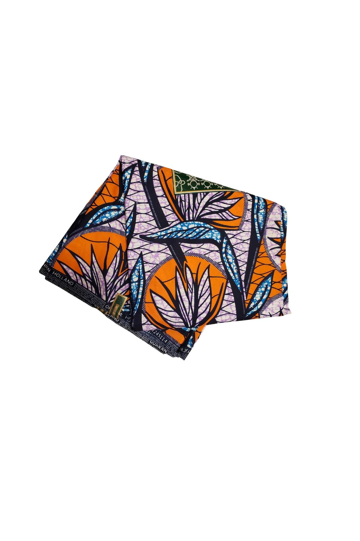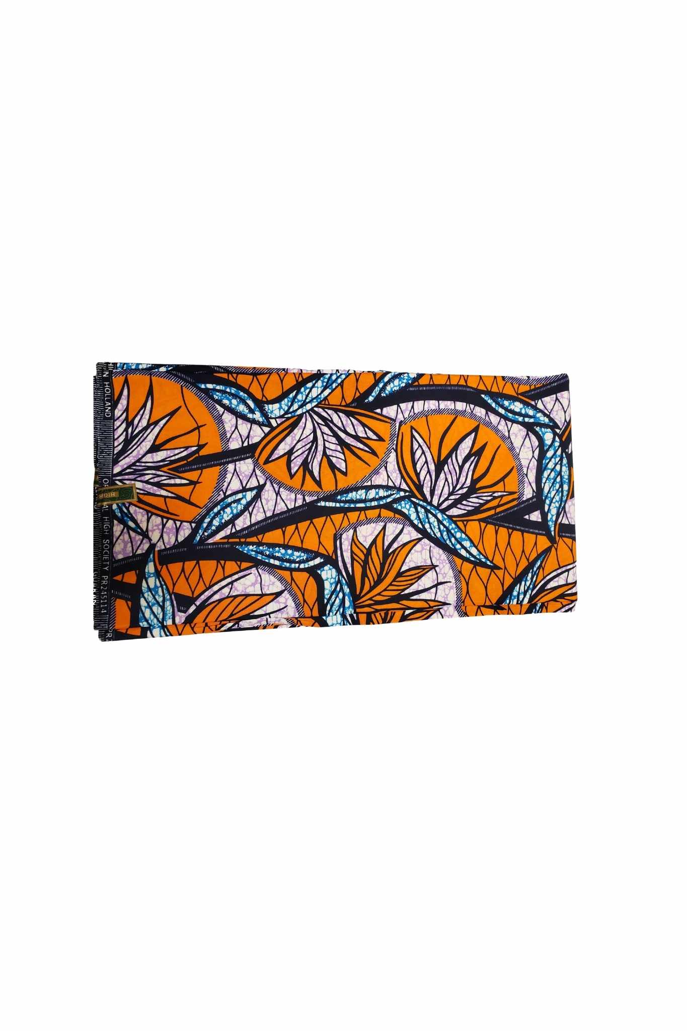 African Print Fabric- Orange & Blue Ankara Wax Cloth