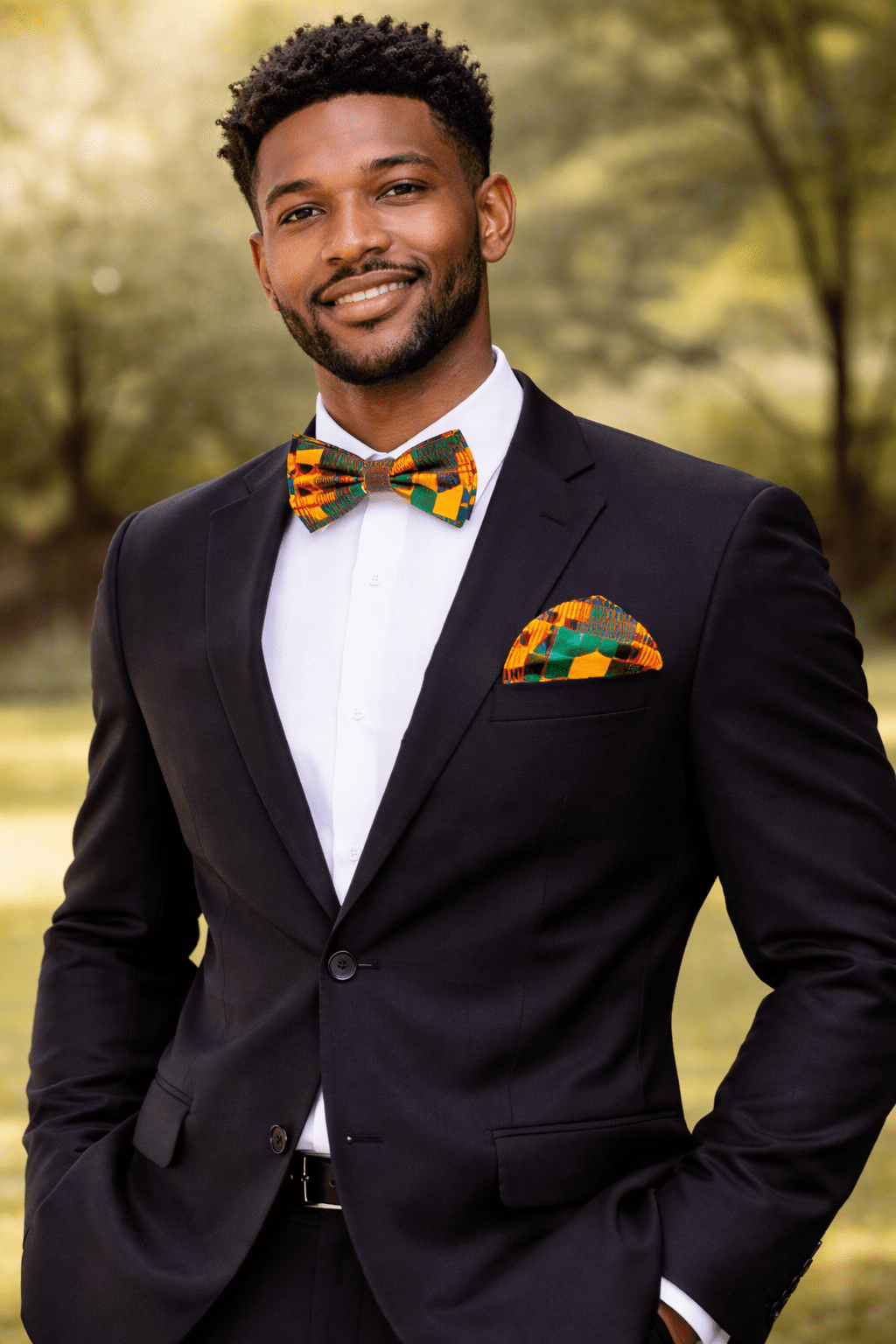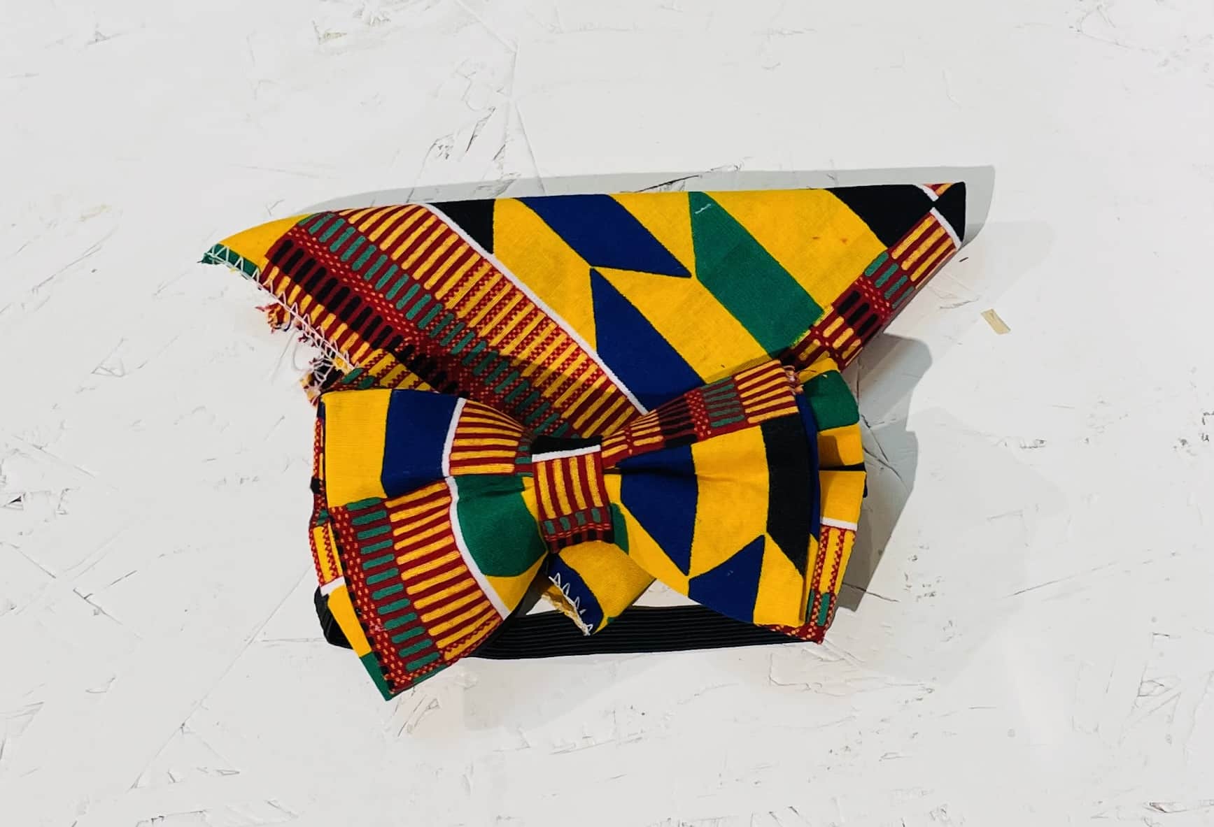 Introducing our Kente Print Bow Tie – a striking and culturally rich accessory that embodies the vibrant traditions of West Africa. Crafted from authentic Kente fabric, this bow tie is a celebration of the intricate weaving techniques and bold color combinations synonymous with Kente textiles.