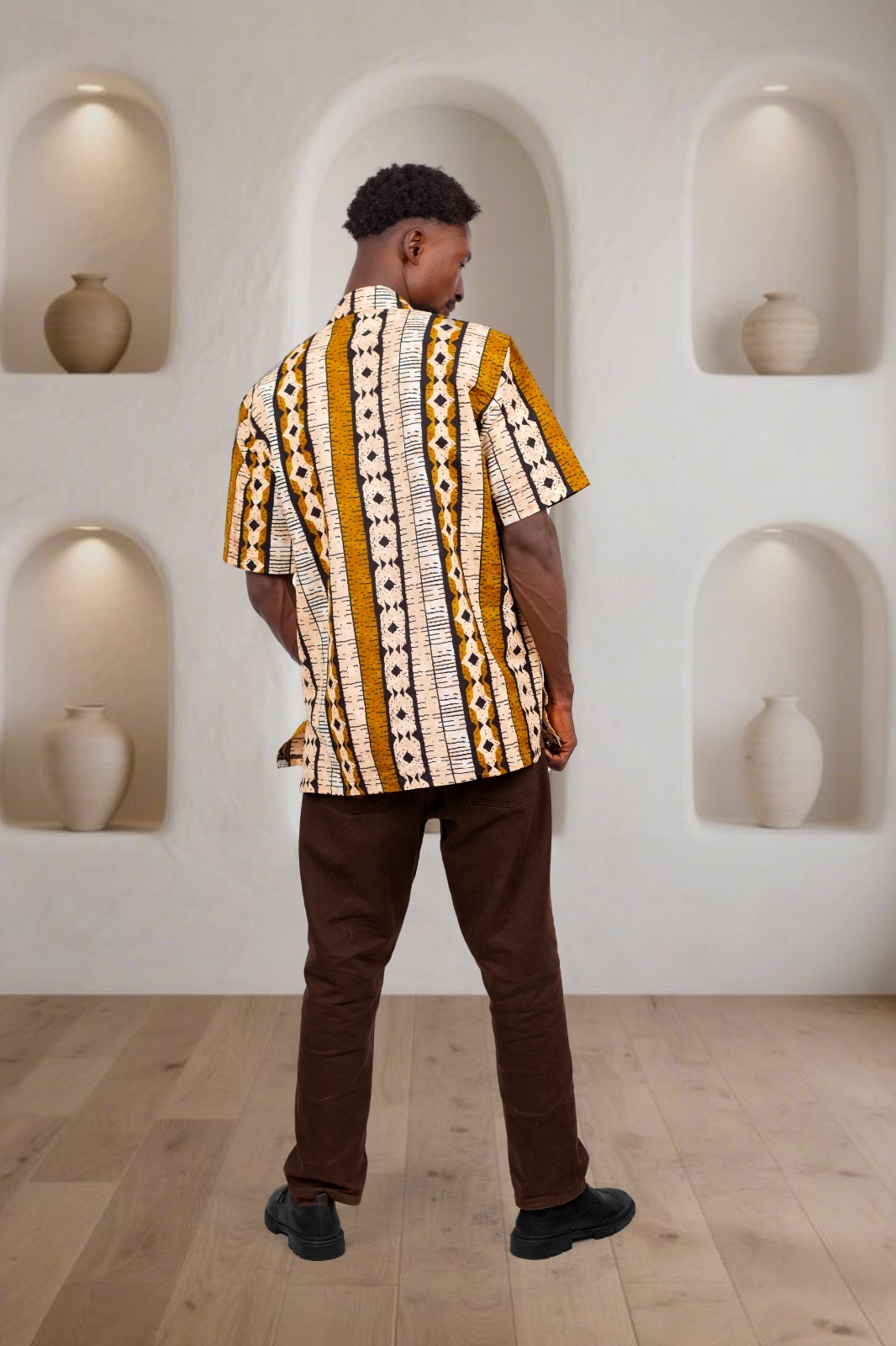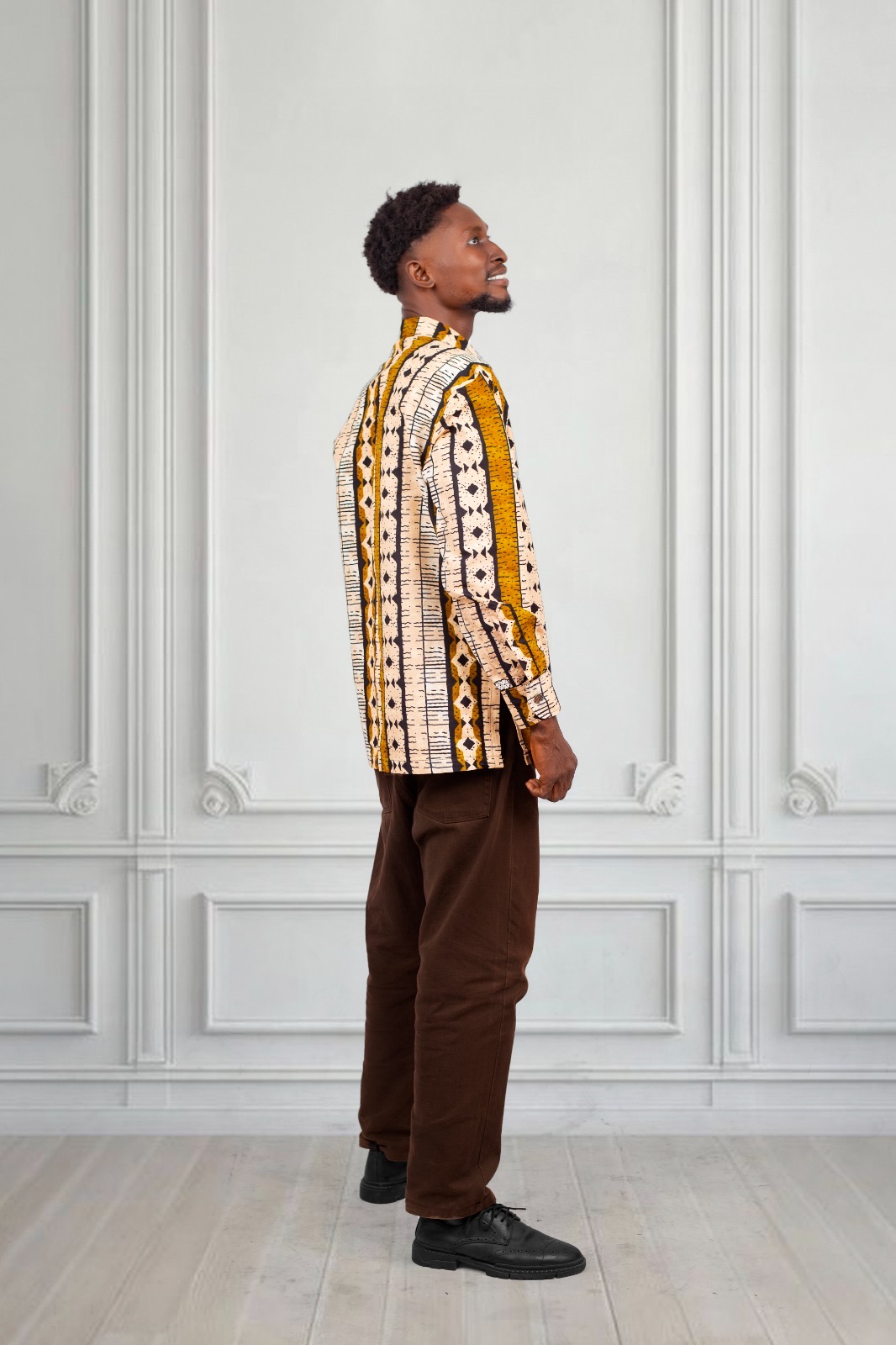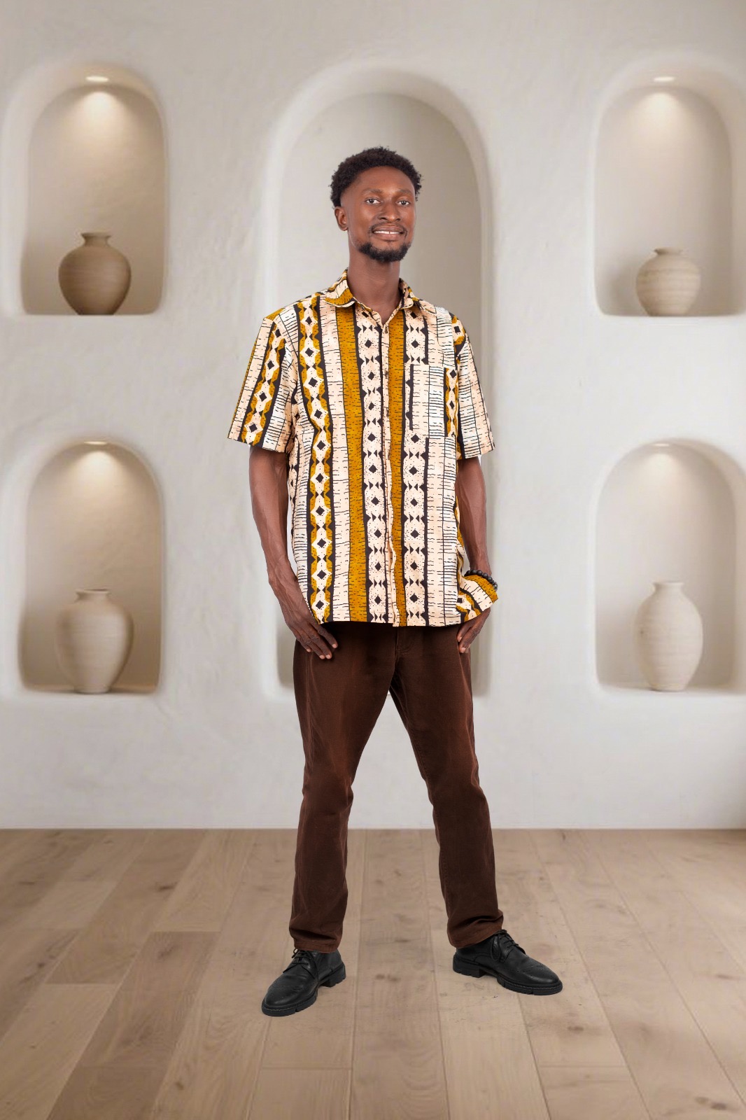 Step into effortless style with this Men’s African Print Shirt, available in both short-sleeve and long-sleeve options for versatile, year-round wear. This bold, culturally inspired piece is designed for men who appreciate originality, comfort, and modern African fashion. Featuring a beautifully detailed tribal pattern in warm mustards, browns, and ivory tones, it strikes the perfect balance between traditional artistry and contemporary tailoring.