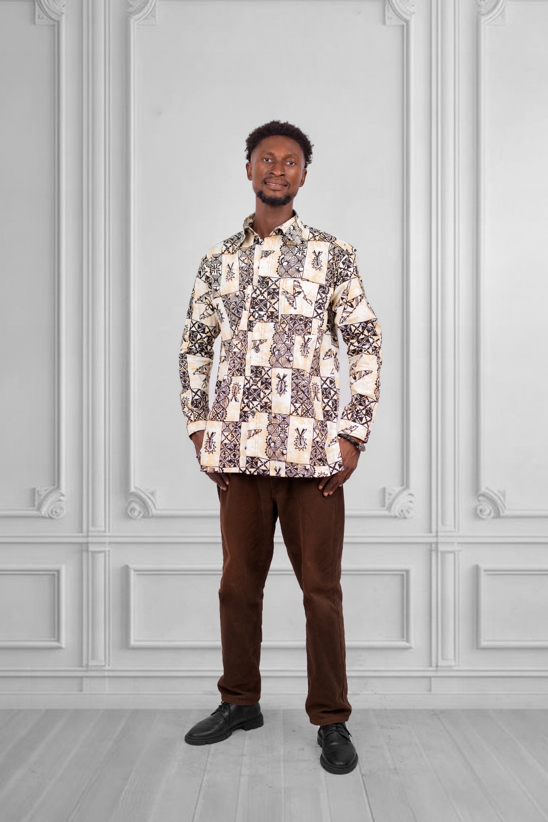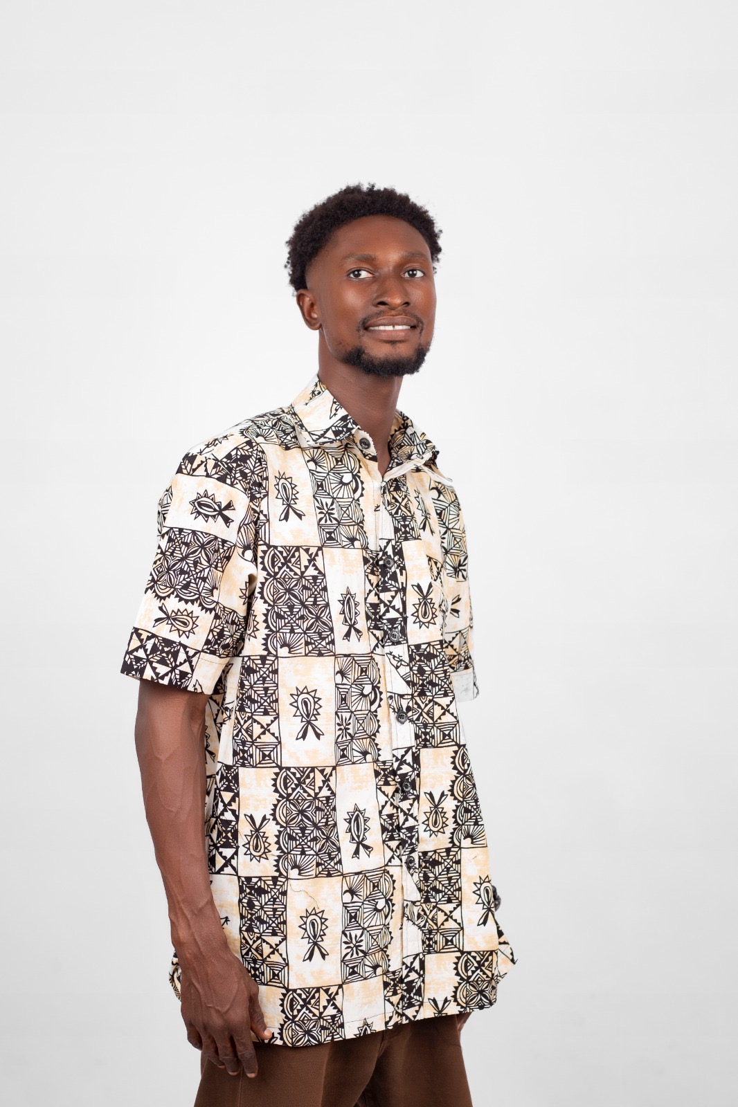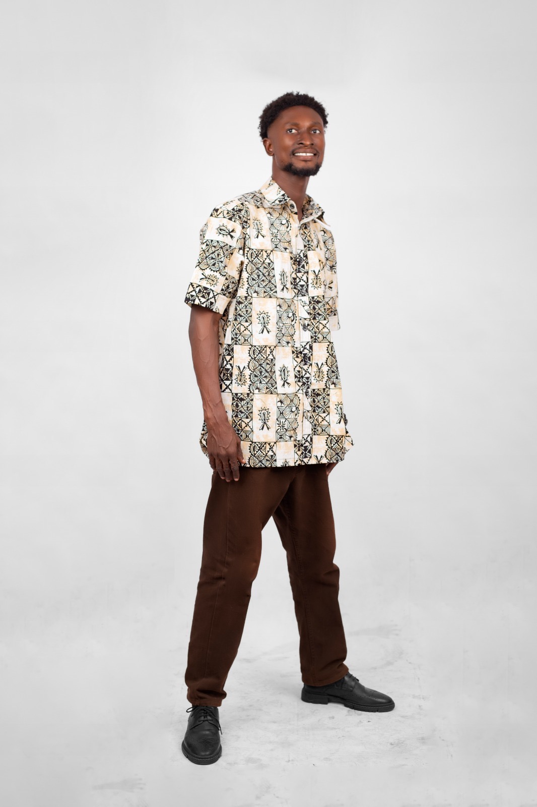 Step into effortless style with this Men’s African Print Shirt, available in both short-sleeve and long-sleeve options for versatile, year-round wear. This bold, culturally inspired piece is designed for men who appreciate originality, comfort, and modern African fashion. Featuring a beautifully detailed tribal pattern in warm mustards, browns, and ivory tones, it strikes the perfect balance between traditional artistry and contemporary tailoring.