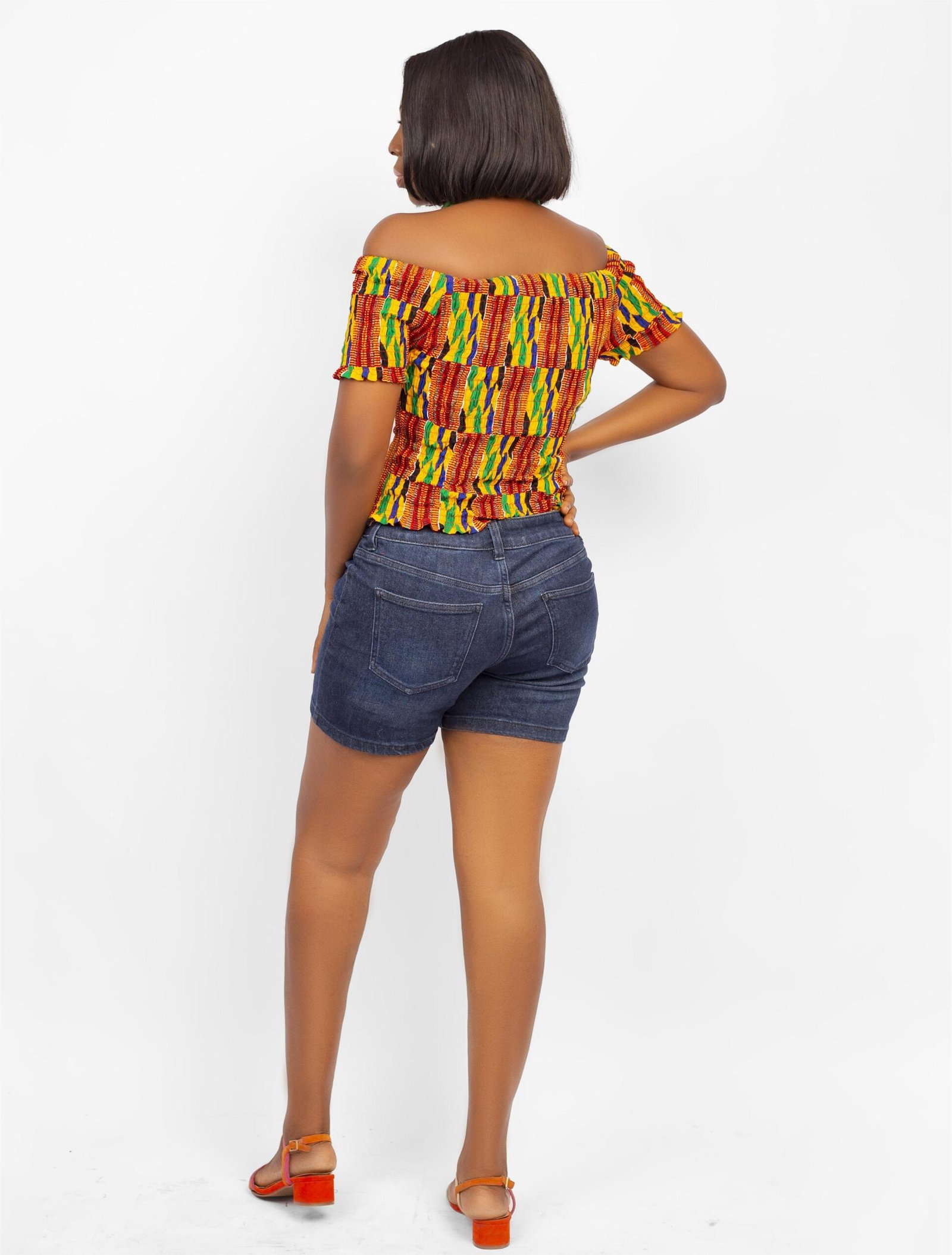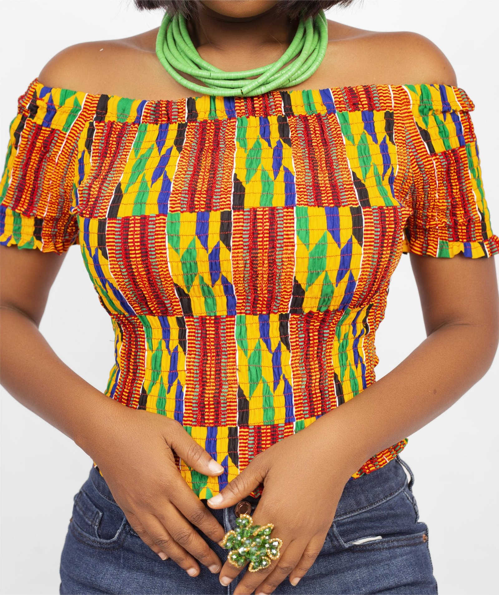 Looking for a cute top? We have you covered with this gorgeous top in African print. With a sexy off shoulder design, this top will take you from the beach to a party in style. Perfect with a skirt, shorts or some jeans in summer. Made from lightweight cotton-feel fabric, this colourful top will stand you out from the crowd. Perfect for a holiday, beach, travel or everyday wear.