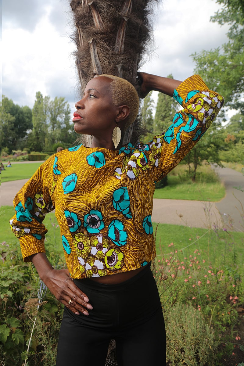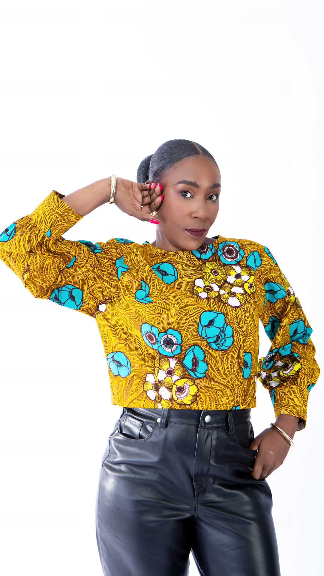 The Akinyi Ankara Cropped Floral Top boasts a timeless silhouette with a high straight neckline that nods to the classic elegance of traditional Ankara attire. Its long sleeves add a touch of sophistication and versatility, making it suitable for a wide range of occasions. The slight puffy detailing at the cuffs adds a contemporary twist, making it a unique and playful piece that stands out from the crowd.