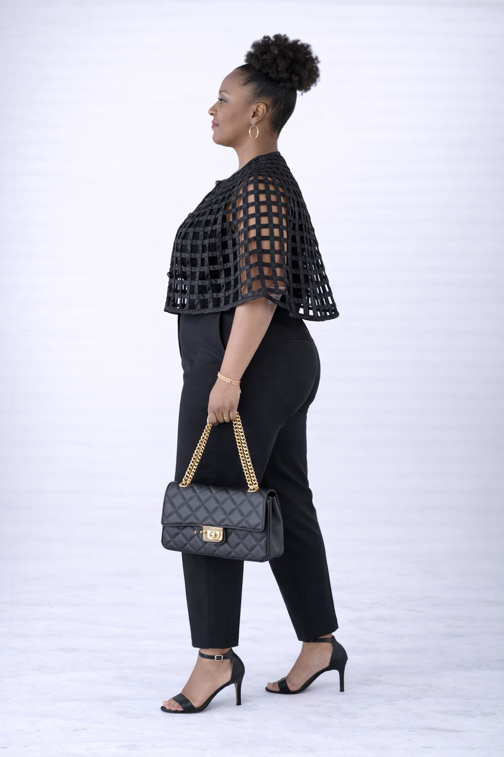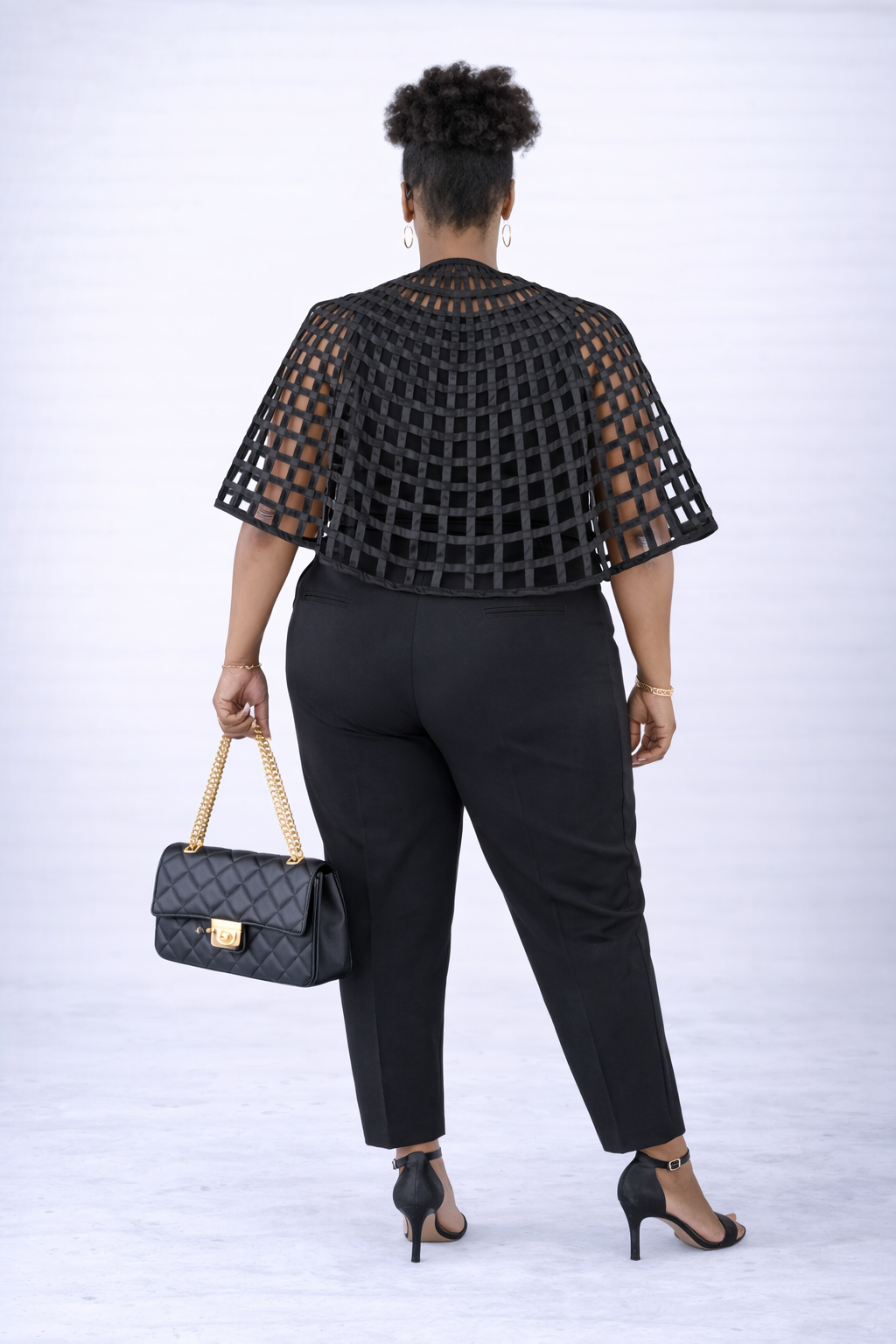 Designed with a front tie closure, this cape allows for an adjustable and comfortable fit, making it both stylish and functional. The elbow-length design provides just the right amount of coverage. Here creating an elegant drape over your shoulders while allowing freedom of movement.