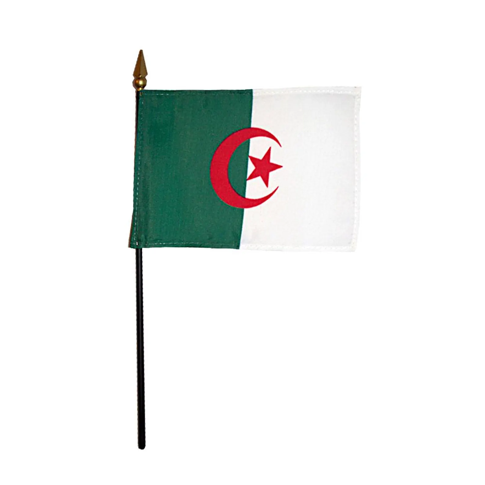 Crafted from lightweight yet durable polyester, the flag offers excellent color retention and movement, whether it’s standing on your office desk or being waved during national celebrations. The flag is securely mounted on a sturdy stick with an optional base, making it easy to display anywhere you want to add a touch of Algerian spirit.