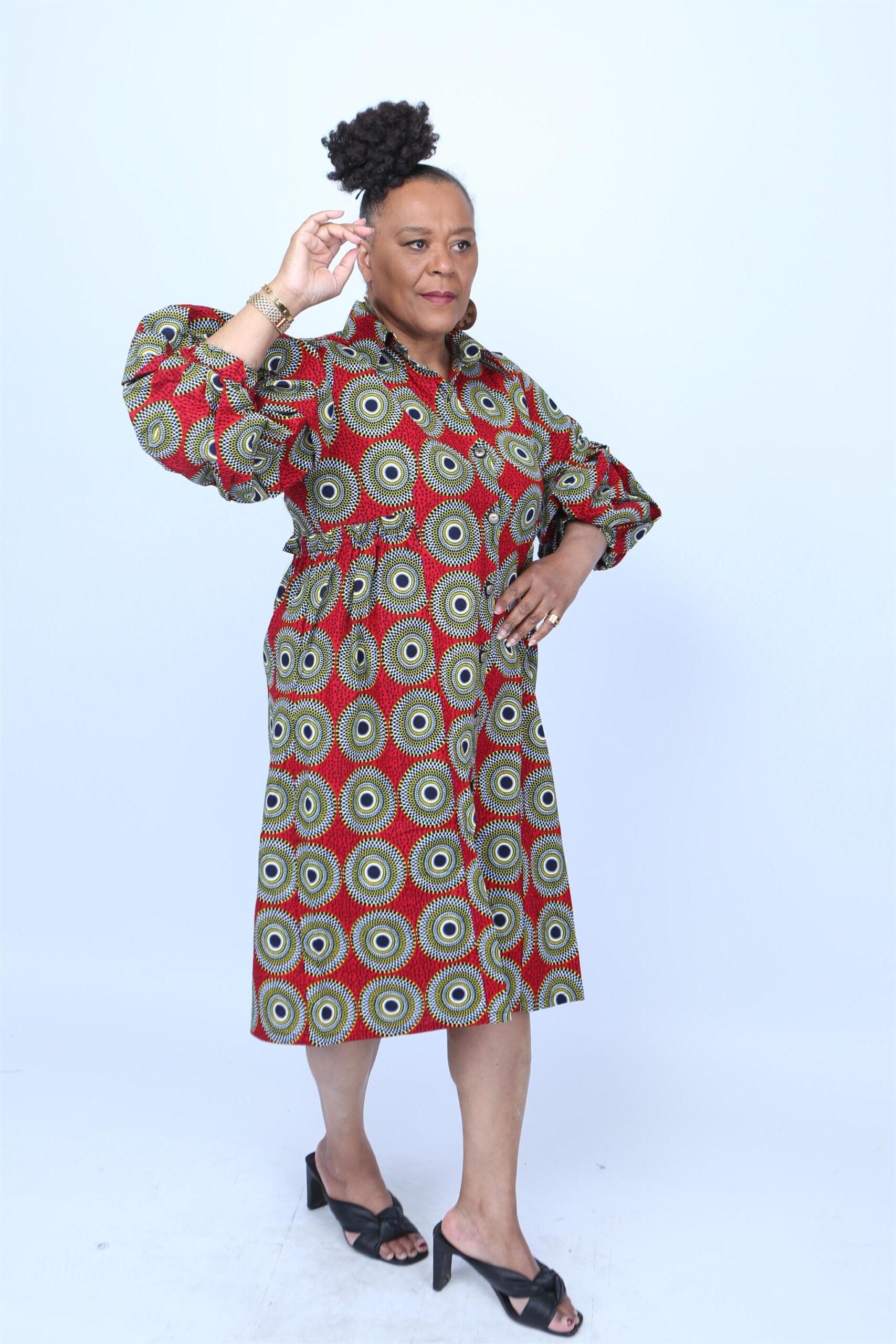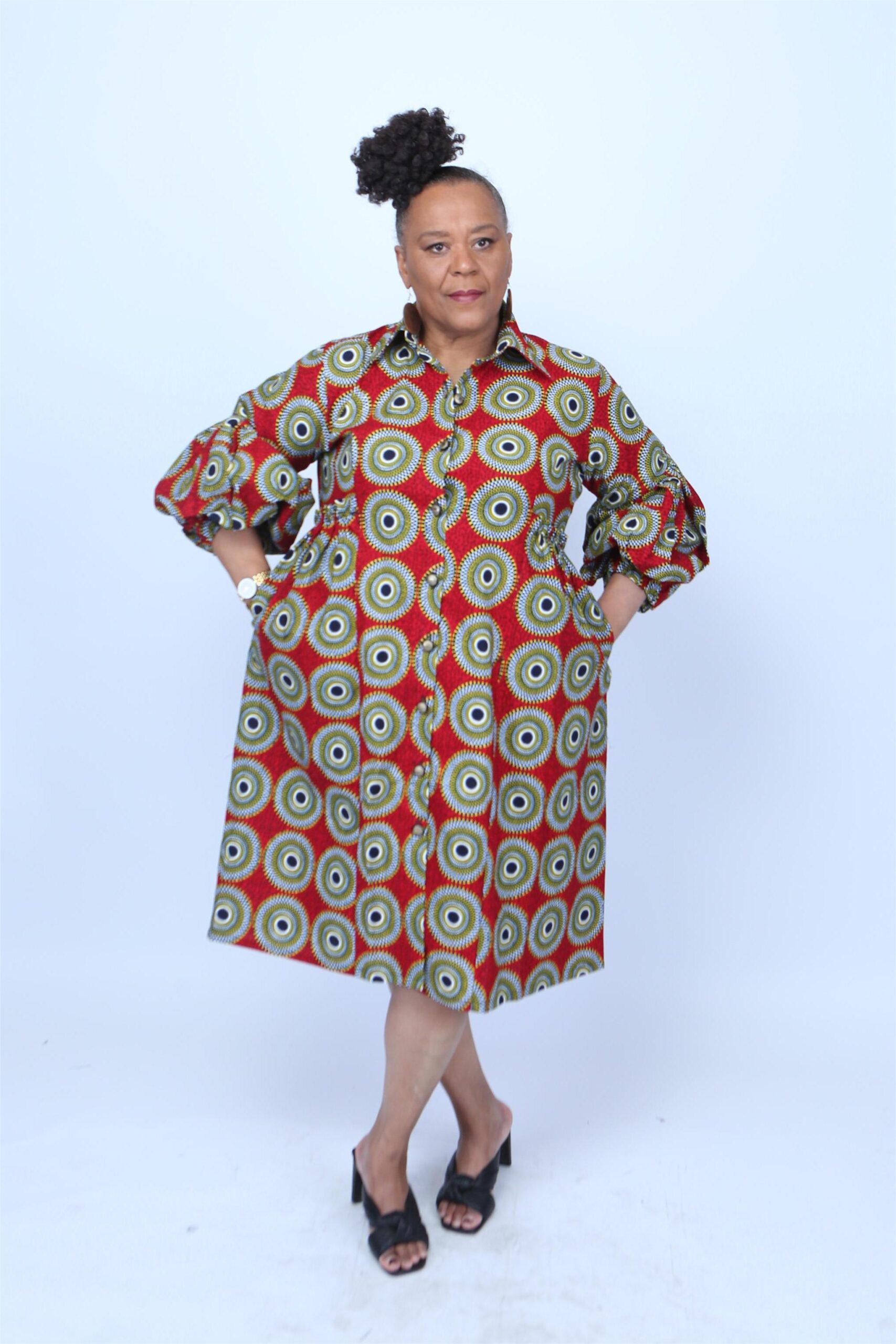 Ankara African Print Shirt Style Mini Dress With Balloon Slomfoeeves is the perfect piece of that event or to help brighten up your wardrobe.The balloon style sleeves help to set a unique look as well as being crtable.The collar style helps to give an elegant look and the mini dress style has buttons and can be dressed up or down and can be style with a belt or accessories.