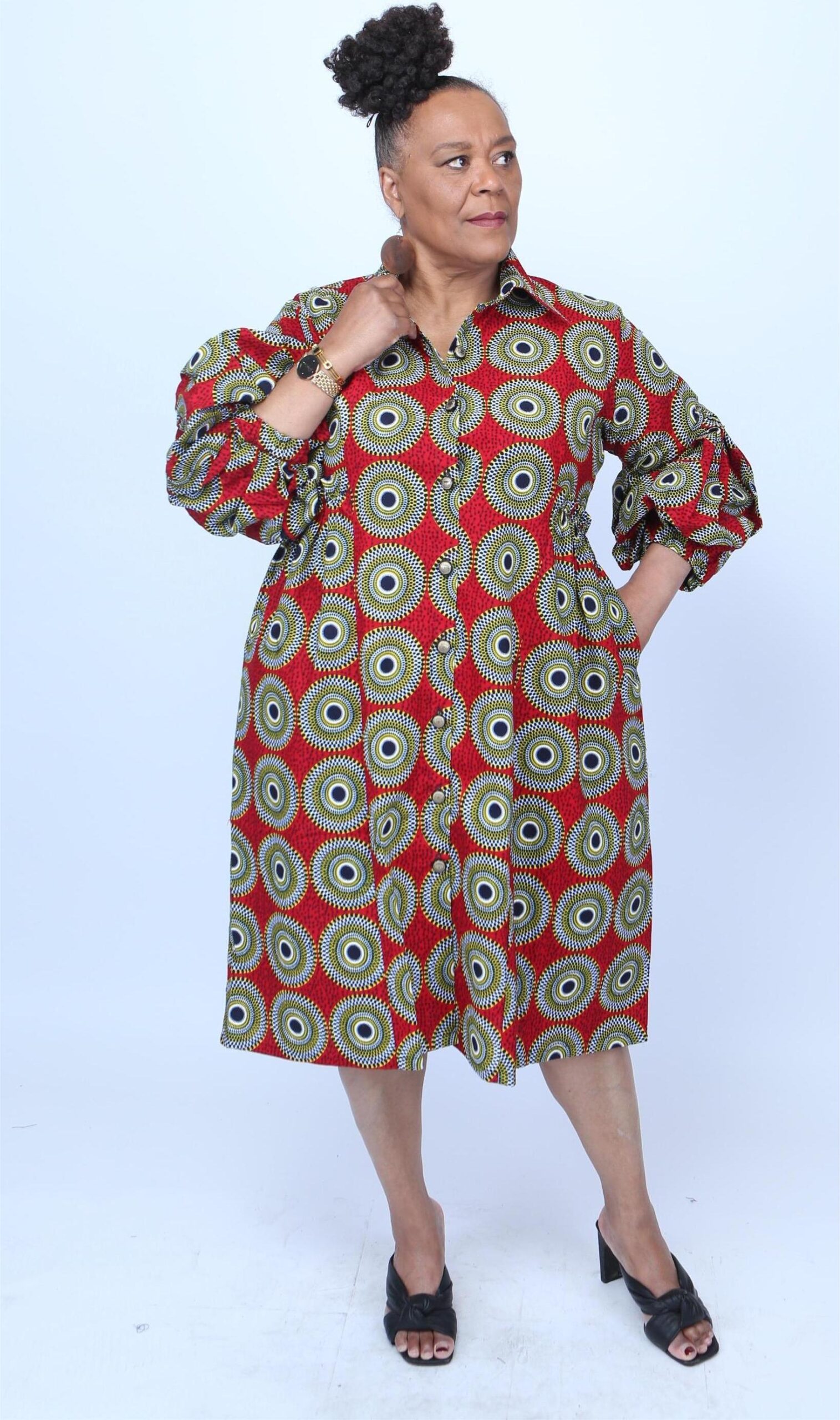 If you like this Shirt Style Mini Dress With Balloon Sleeves then you may also like our Destiny Ankara African Print Shirt Dress With Flared Trim