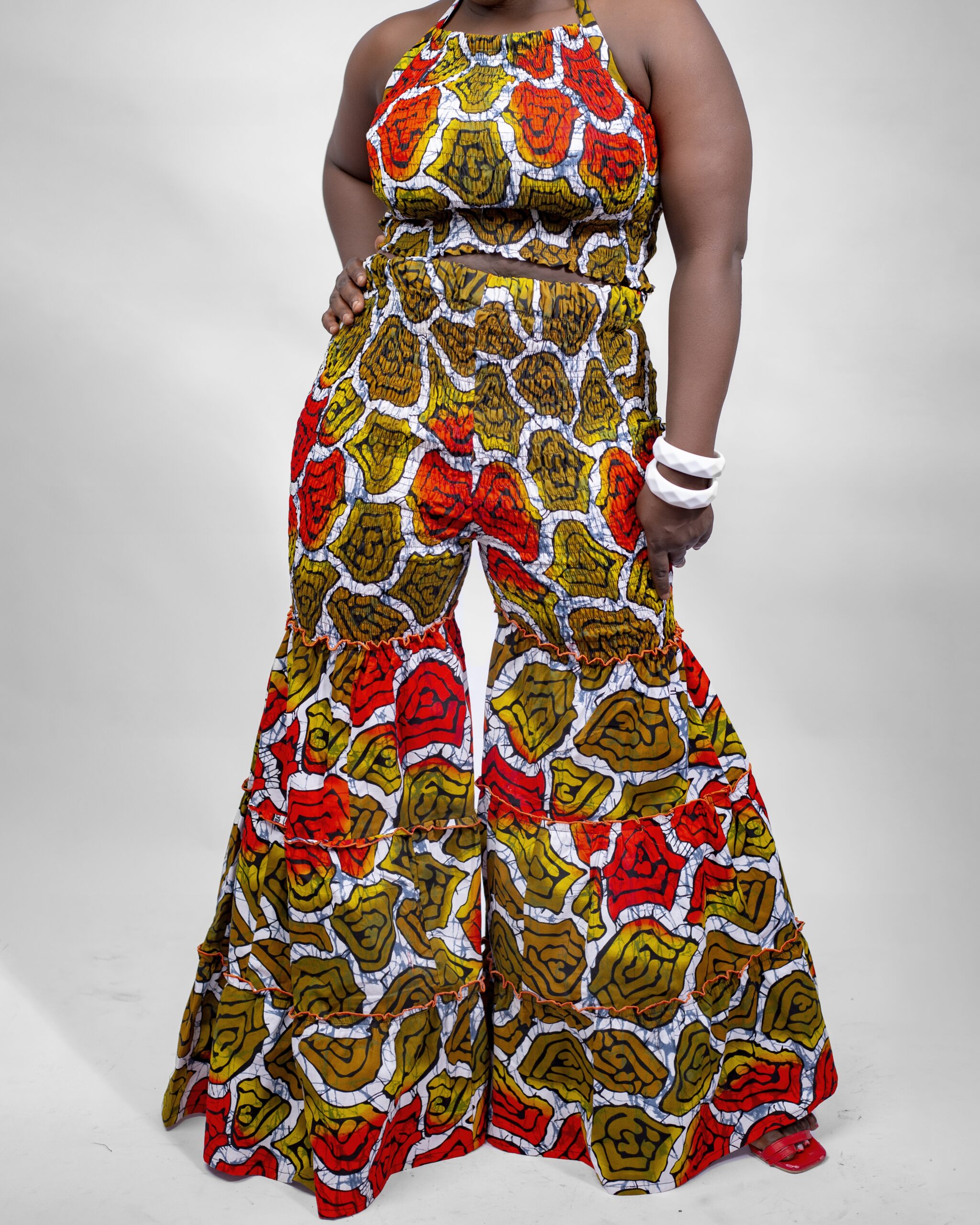 Vibrant Ankara print adds energy to every look.
