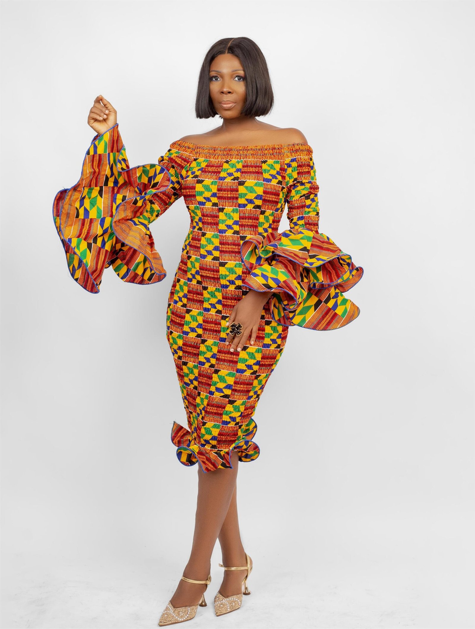The Asa Ankara Off-Shoulder Ruffle Dress is where bold style meets timeless charm. Made from vibrant Ankara fabric, this dress brings culture and confidence together in the best way.