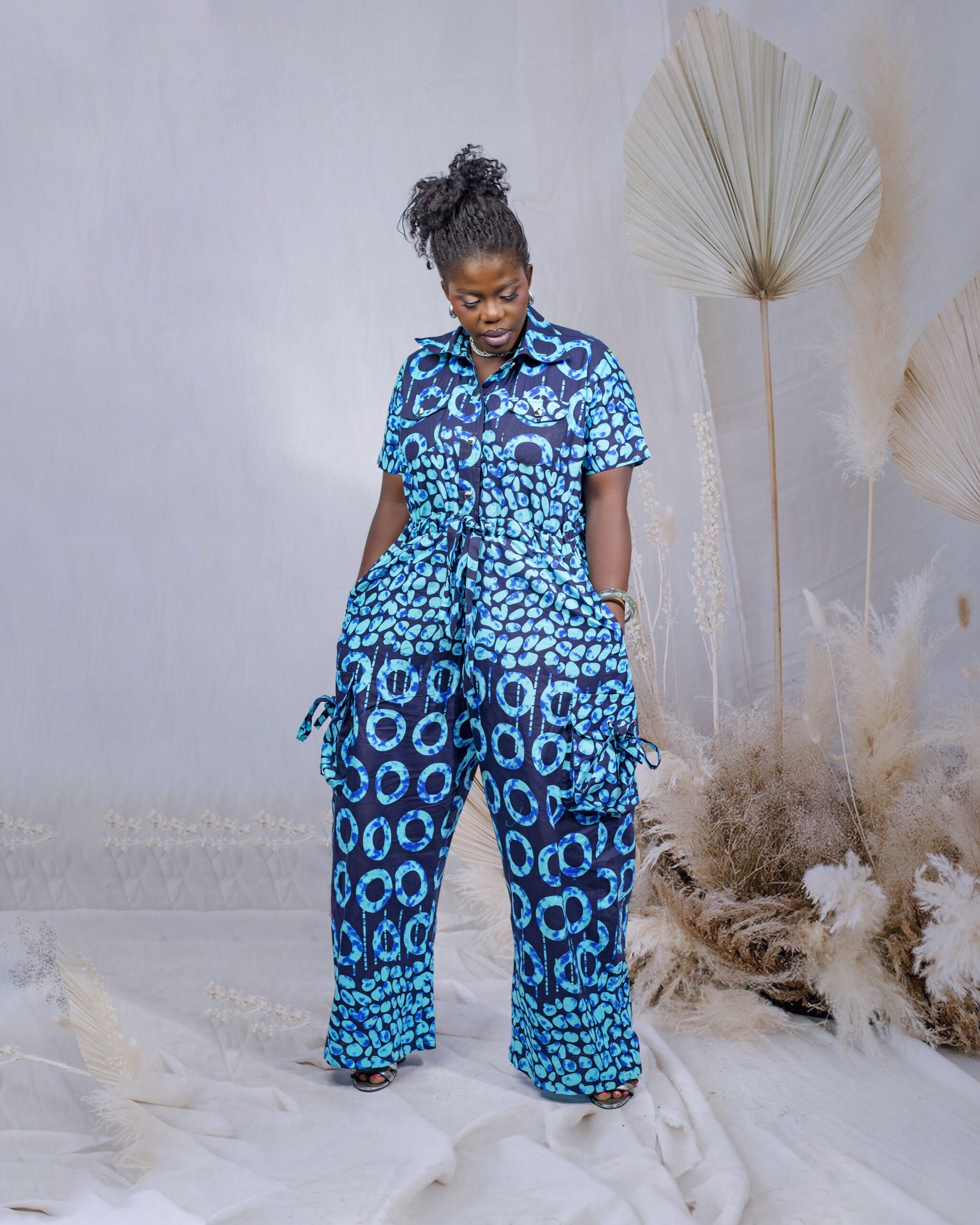 Made from authentic African wax print cotton, this jumpsuit is lightweight, breathable, and full of personality. Whether worn to brunch, cultural events, holidays, or evening gatherings, it transitions seamlessly from casual chic to standout elegance.