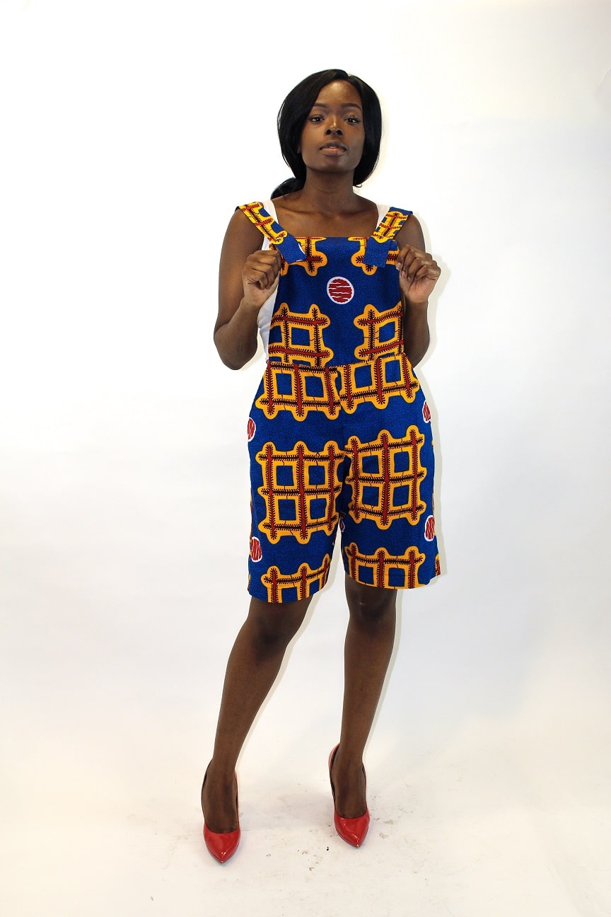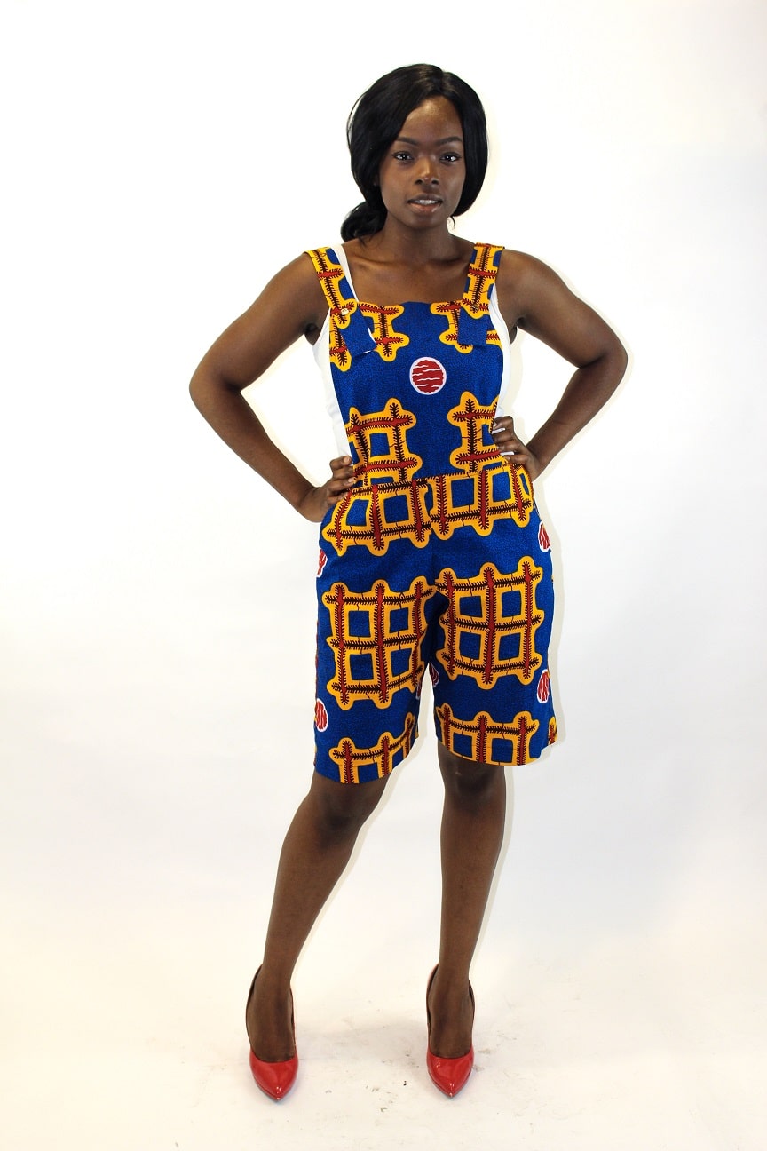 If you like this sleeveless Ankara dungaree playsuit then you may also like our Bamidele African Ankara Pinafore Playsuit
