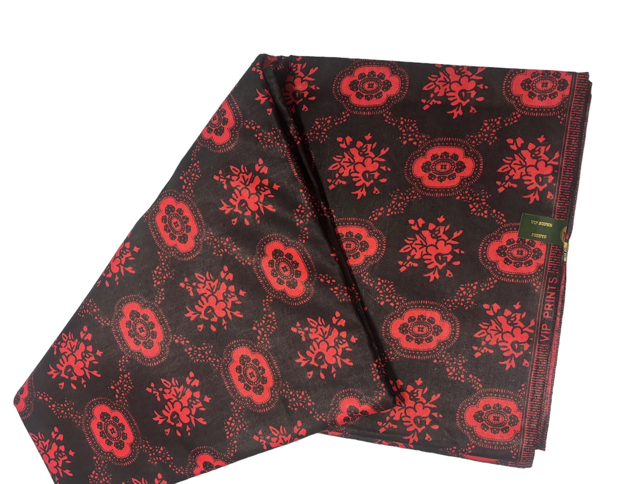 This African Ankara Red and Black Abstract Design 6 Yards makes the perfect fabric for dress making or would make a perfect table cloth or can be used as a head wrap ! It features a beautiful unique abstract pattern that is sure to help you stand out from the crowd.