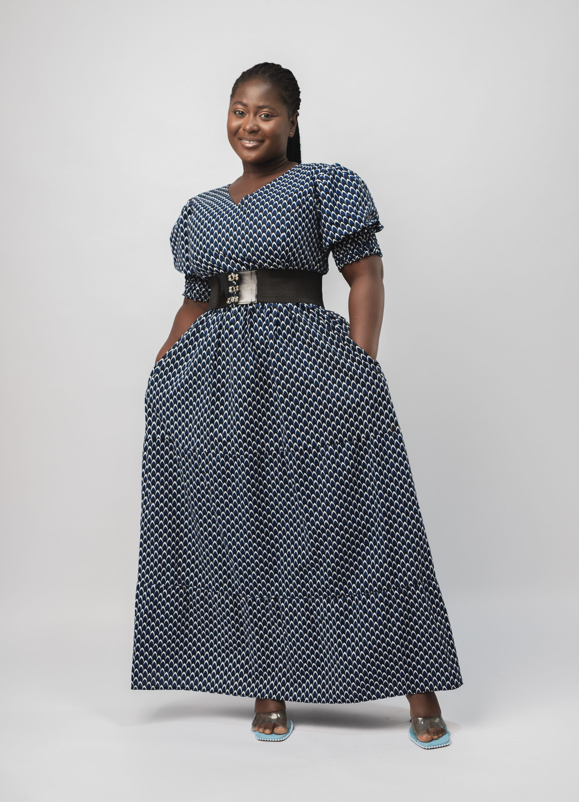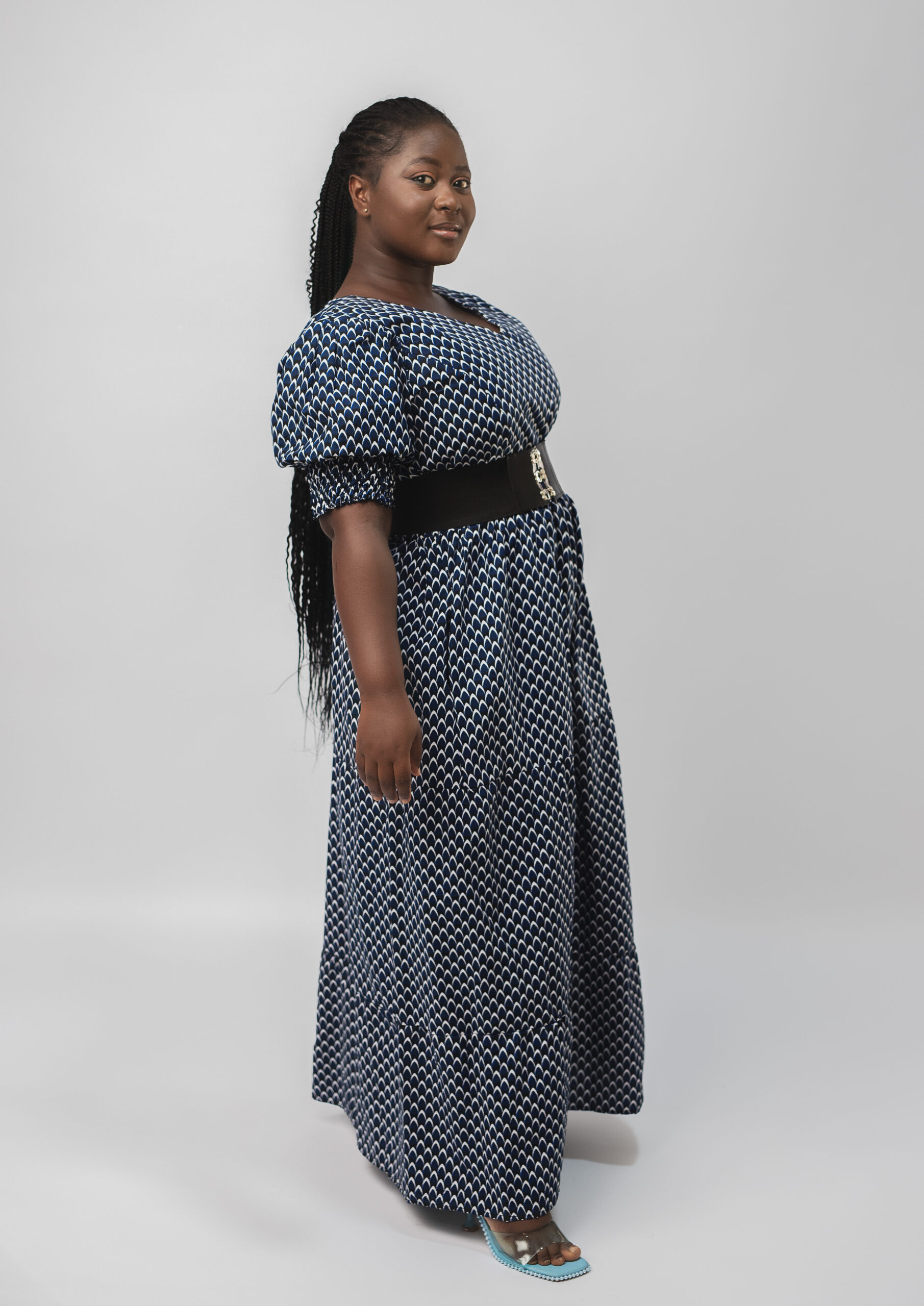 A focal point of this dress is the enchanting puffy sleeves, which add a touch of drama and sophistication to the design. Our Ankara fabric showcases vibrant colors and intricate patterns that represent the rich cultural heritage of Africa. Each dress is a unique work of art, reflecting the artistry and creativity of African craftsmanship. In addition, this long A-line dress is perfect for both formal occasions and casual gatherings. Whether you’re attending a wedding, a gala, or simply looking to make a statement at a special event, this dress will make you feel confident and stunning.