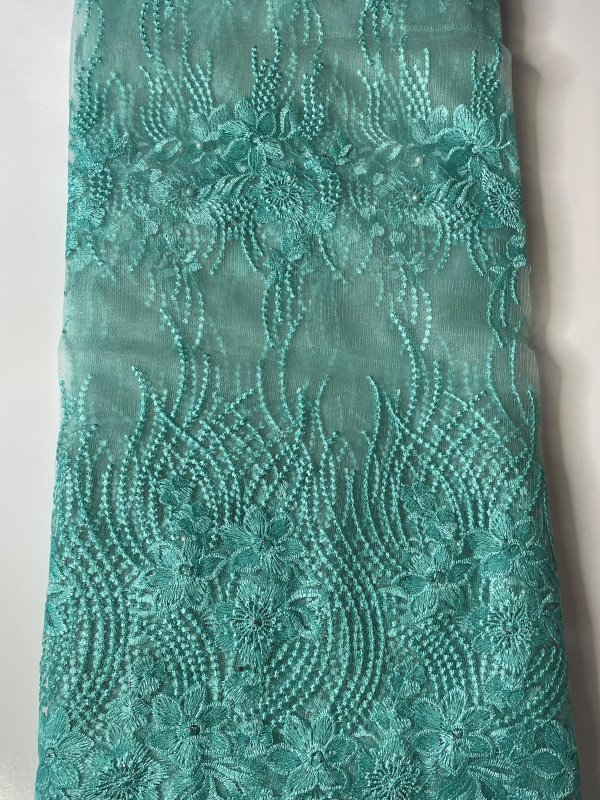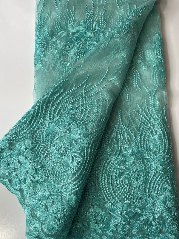 This beautiful Mint Green French Lace Fabric features embellished stones in the lace. Perfect for making dresses, tops, skirts, blouses or trousers, or any outfits and is very high quality. Featuring beautiful patterns and embellishments, this Mint Green French Lace Fabric can be lined with any fabric of your choice. It comes in 5 yards. This lace can also be shipped worldwide!