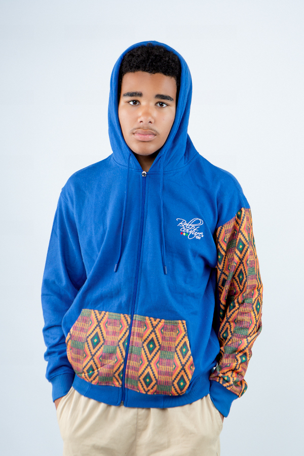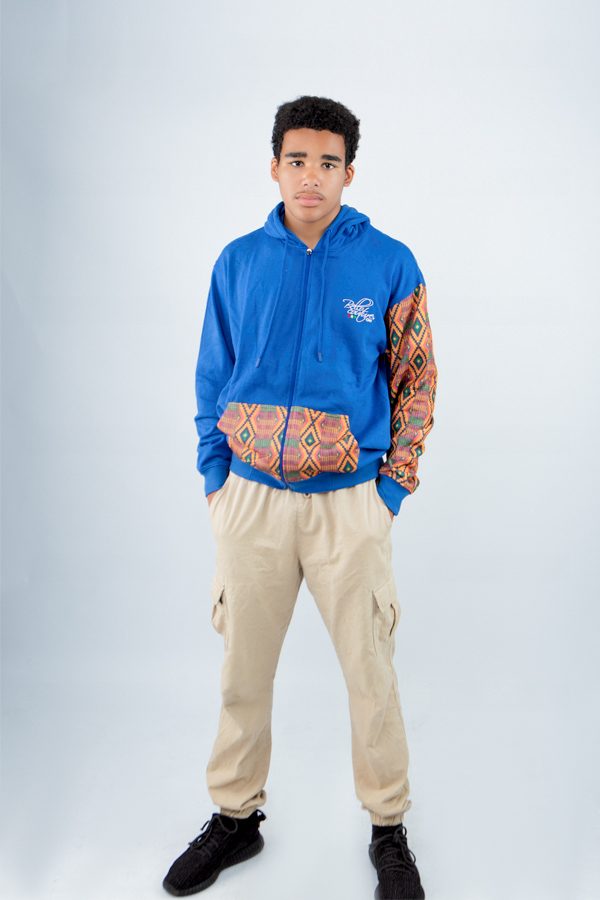 Whether you’re heading to a casual meetup, layering up for a cool-weather day, or simply looking for that standout piece that speaks to who you are — this zip hoodie delivers on every front. Its standout design is defined by vibrant African print fabric panels strategically placed on the sleeves and front pouch pocket, creating a balanced contrast that elevates the classic zip hoodie silhouette.