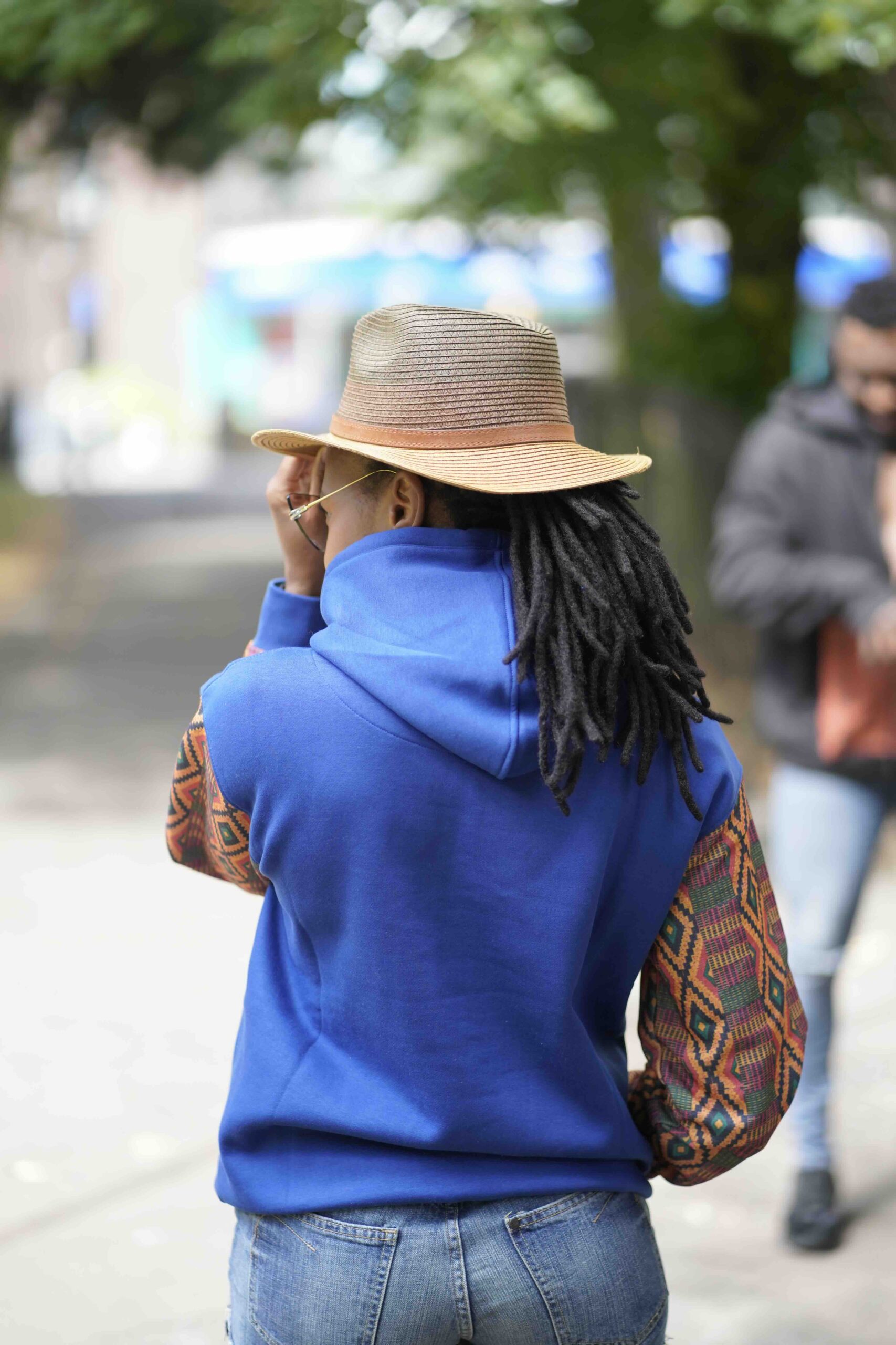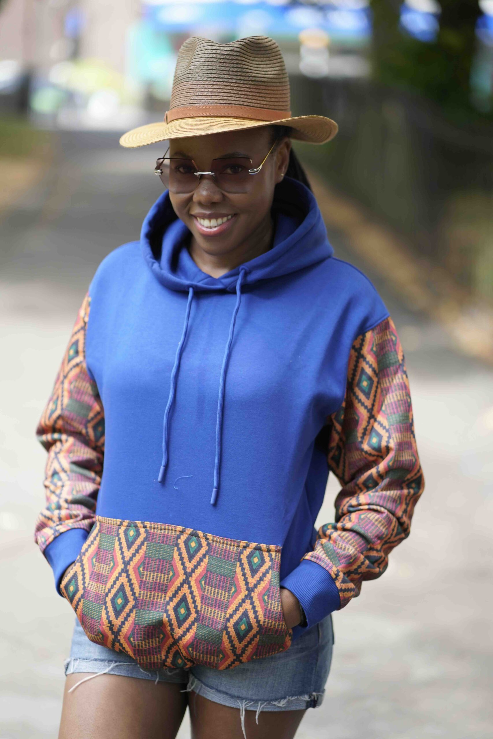 Afro-inspired detailing: Featuring authentic African print fabric on the sleeves and pocket for a cultural twist