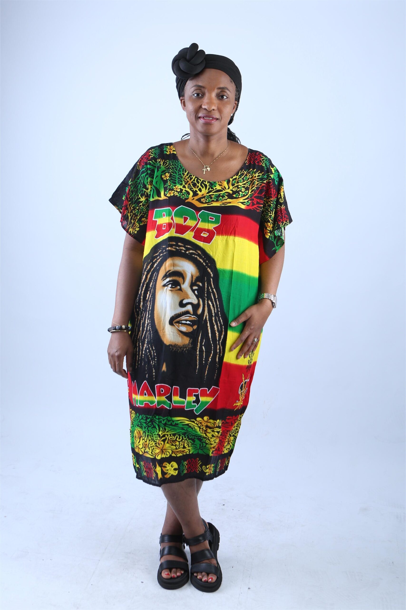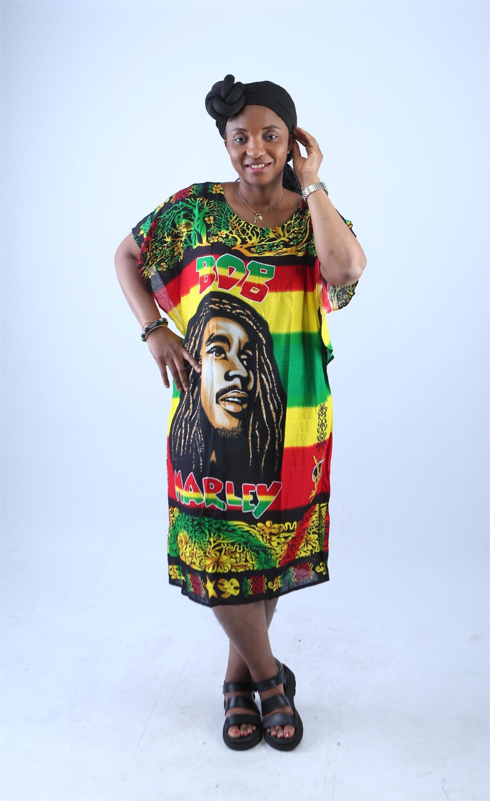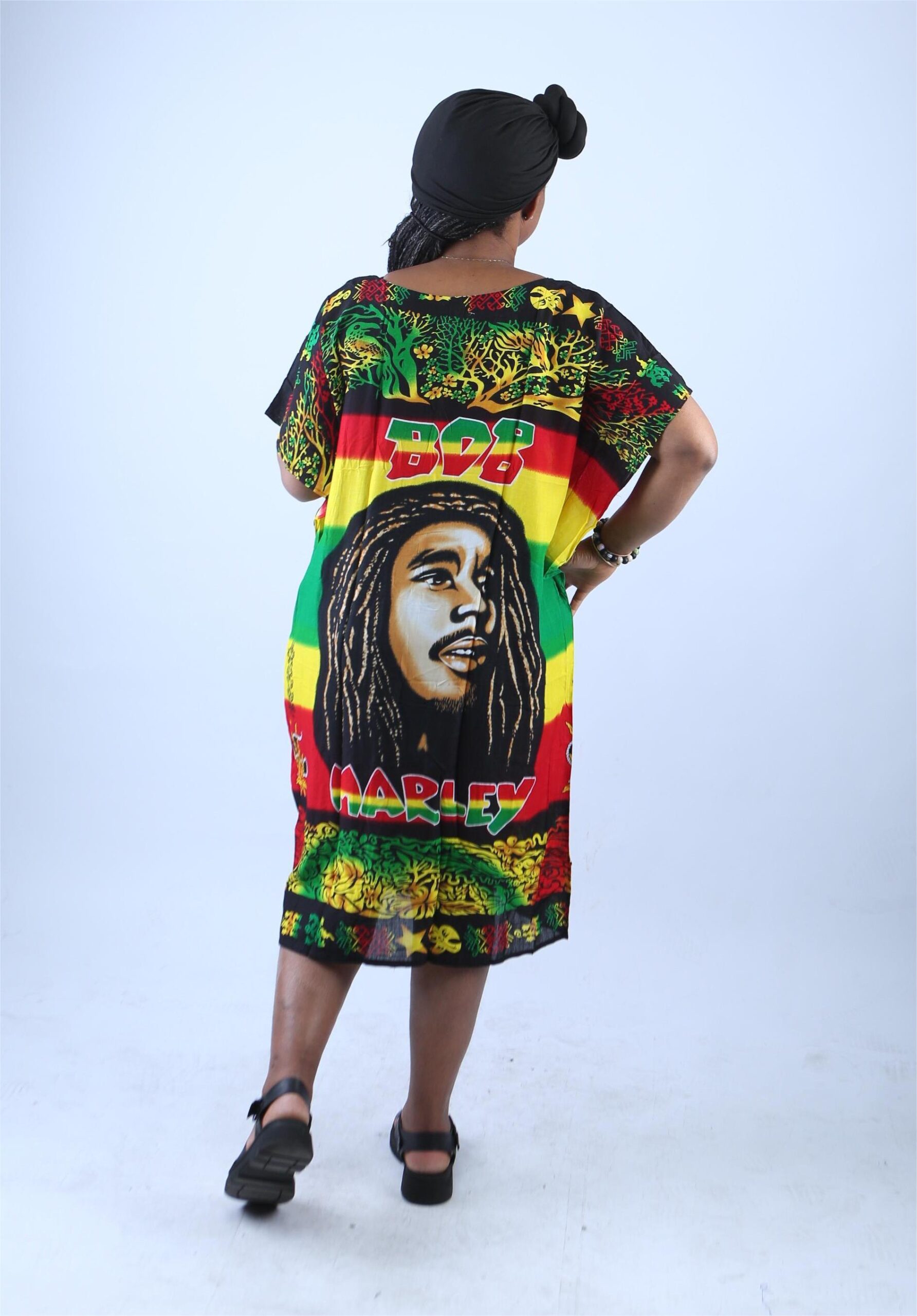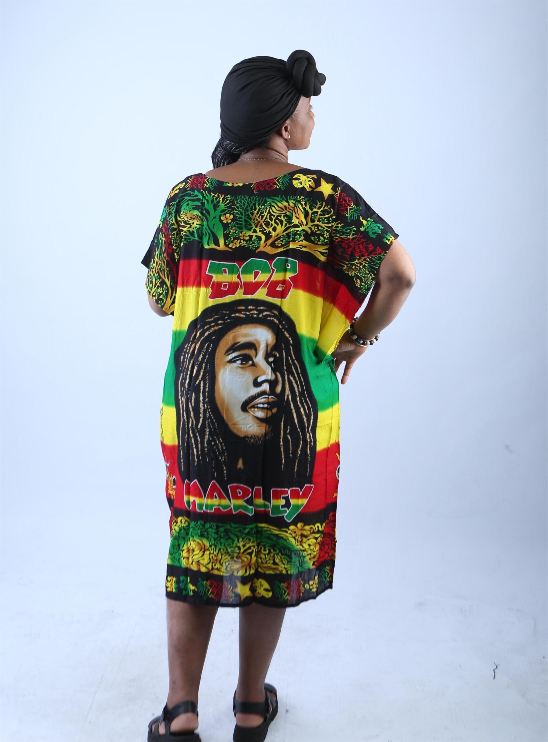 Channel the laid-back spirit of reggae and the enduring legacy of a music icon with this Bob Marley Rasta Kaftan Dress. Designed for bold self-expression and ultimate comfort, this relaxed-fit midi tunic celebrates Jamaican culture, African roots, and the legendary influence of Bob Marley. Whether you’re headed to a festival, beach day, or casual hangout, this dress makes a powerful and stylish statement.