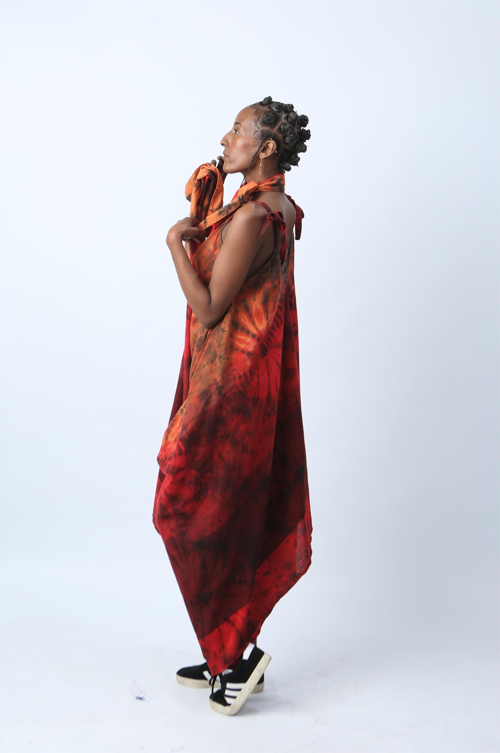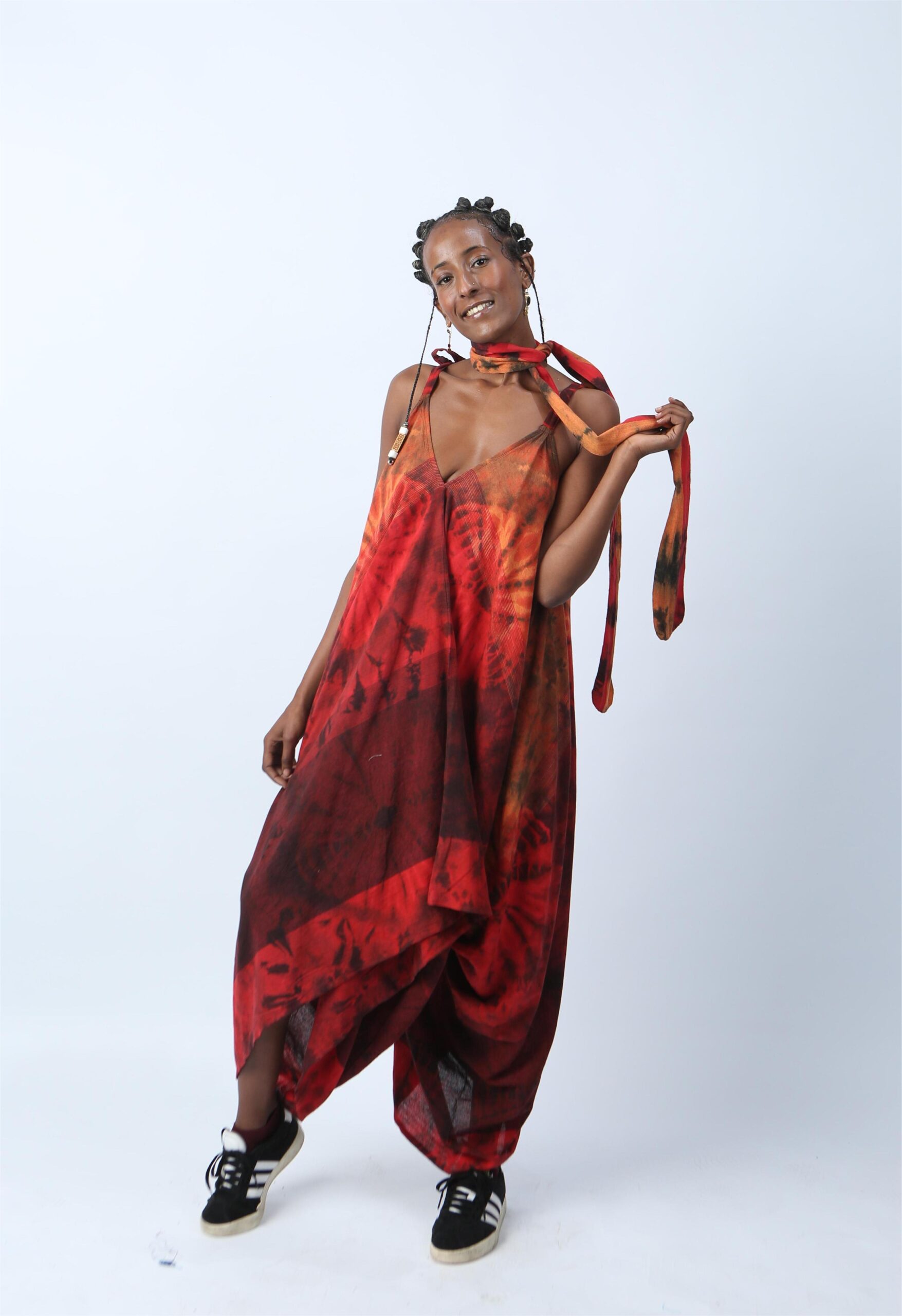 Perfect for summer days, weekend markets, creative studios, or simply unwinding at home, this jumpsuit transitions effortlessly between settings. Pair it with sandals and simple jewellery for a relaxed daytime look, or dress it up with statement earrings and wedges for an evening out. Its versatility makes it a wardrobe essential that embodies both style and comfort.