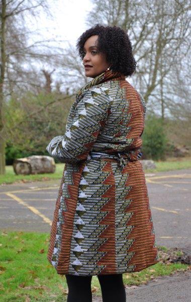 Looking for a quilted coat? We have you covered with this gorgeous ladies brown and cream belted quilted African coat. Perfect for autumn and winter!
