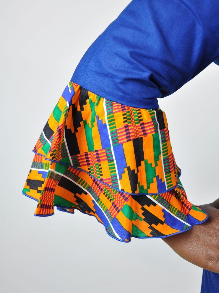 - Pattern Type: Plain Blue with kente fusion