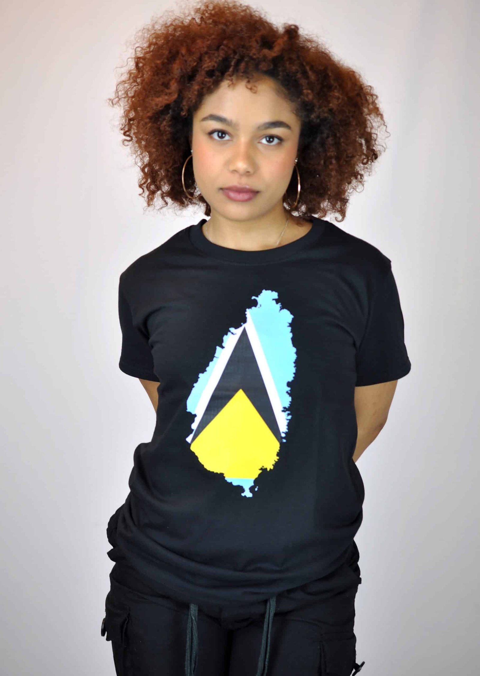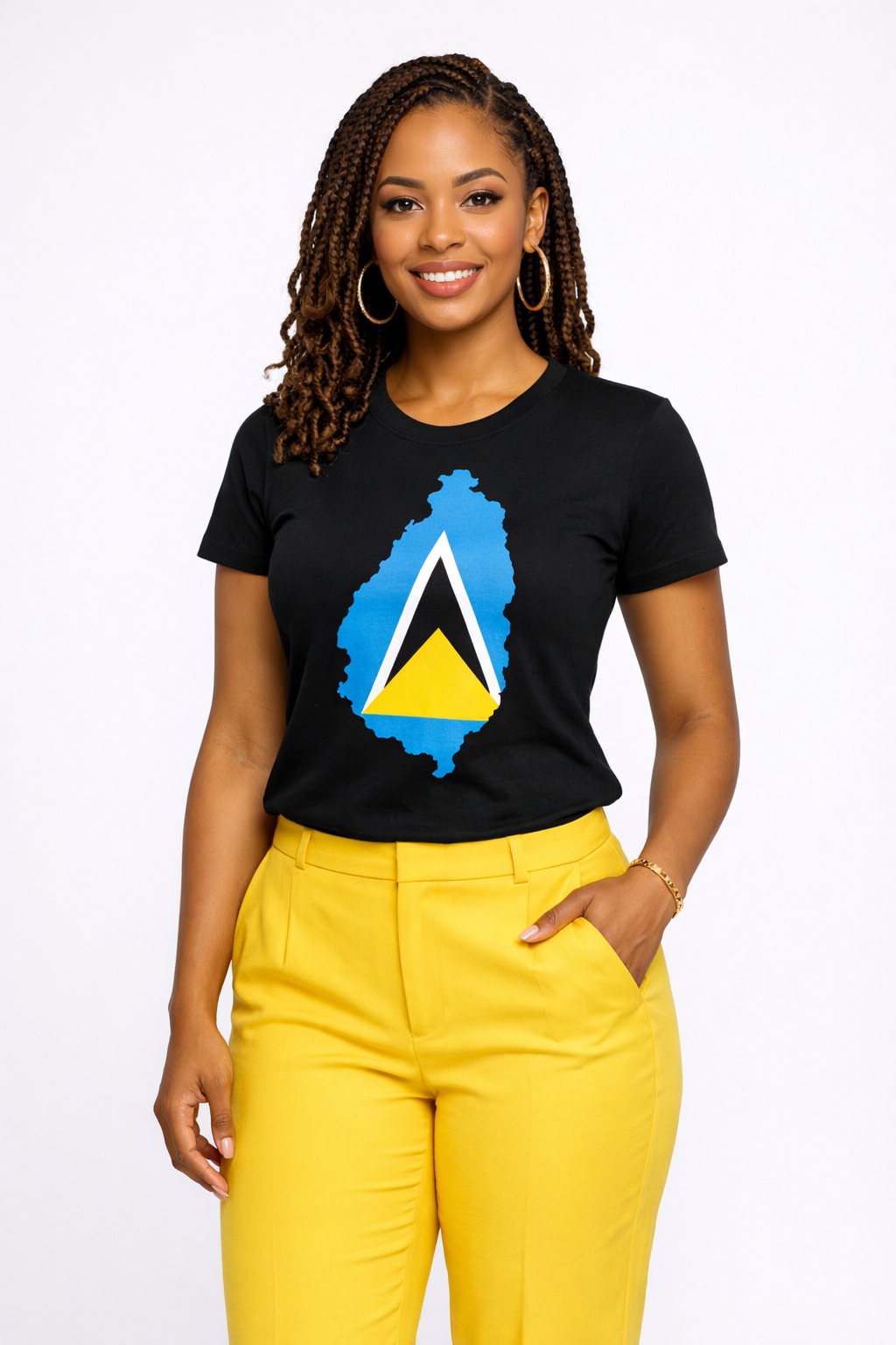 Represent your country with the Clara St Lucia Country Flag Top or pick form ourrange of Country tops. These tops are simple but make a statement. All tops are black, with the Country flag of choice on the middle of the top. In addition, it is not just the flag colours, but also the actual shape of the country. Treat yourself or someone special to this fabulous top!
