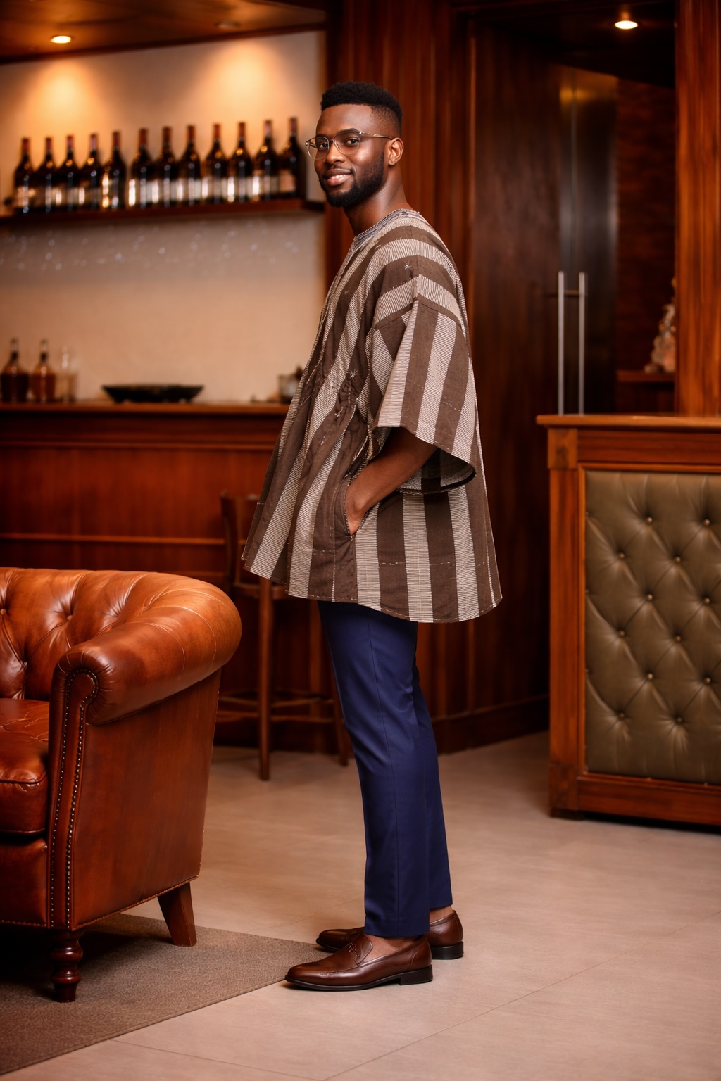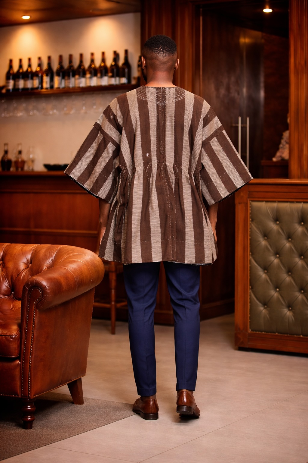 The Cocoa Heritage Stripe Fugu Smock Top is simple, elegant, and timeless. It combines tradition with modern style, offering a refined look for men who prefer understated fashion with cultural depth. Above all, it delivers comfort, versatility, and lasting style.