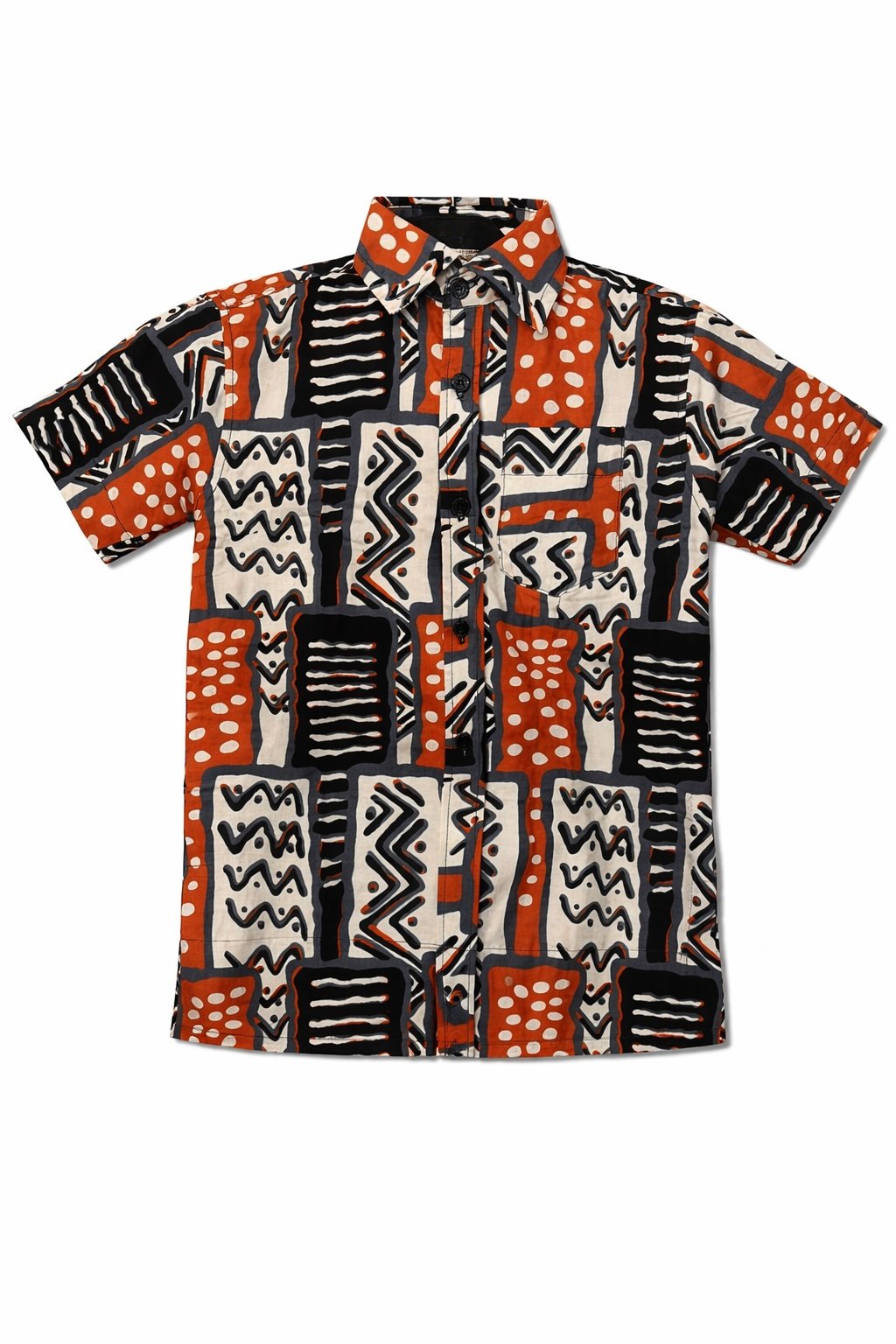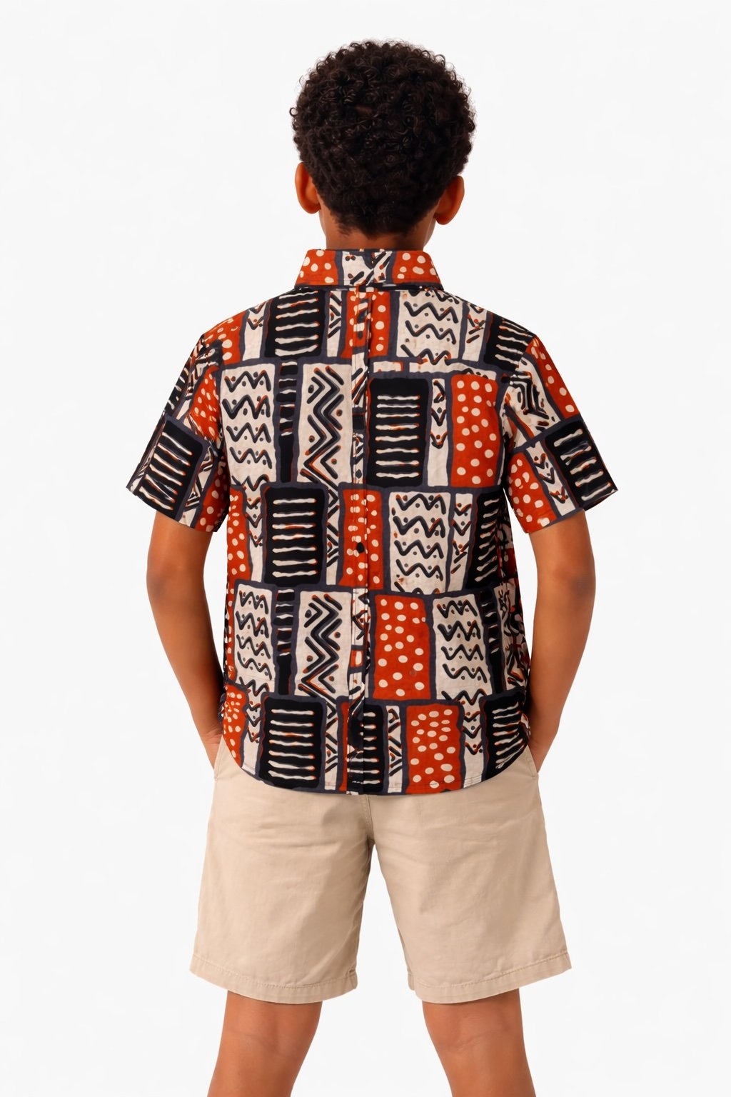 Add a touch of culture and confidence to your child’s wardrobe with this vibrant Kids African Print Short Sleeve Shirt, designed to combine heritage-inspired style with everyday comfort. Crafted from high-quality, breathable cotton, this shirt features a bold geometric print in warm earthy tones, making it perfect for both casual wear and special occasions.
