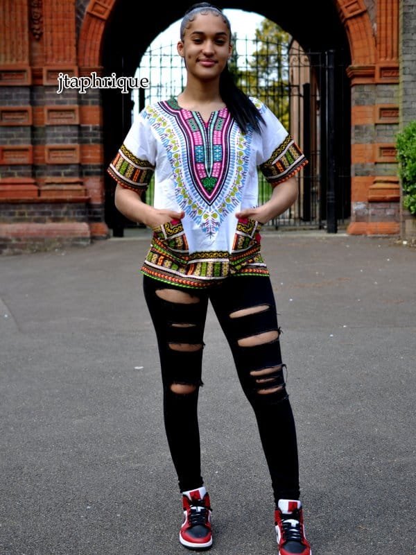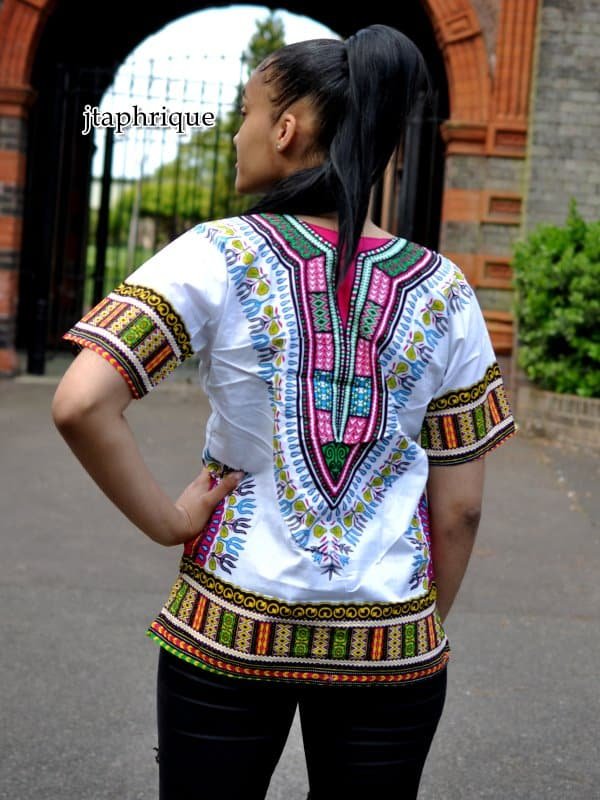 Grab an amazing bargain with this ladies white traditional African Dashiki Shirt! It is loose-fitting and made from premium quality fabric. Treat yourself or someone special to this fabulous African dashiki / kitenge top / traditional top! An ideal gift for her and him; it is also available in plus size.