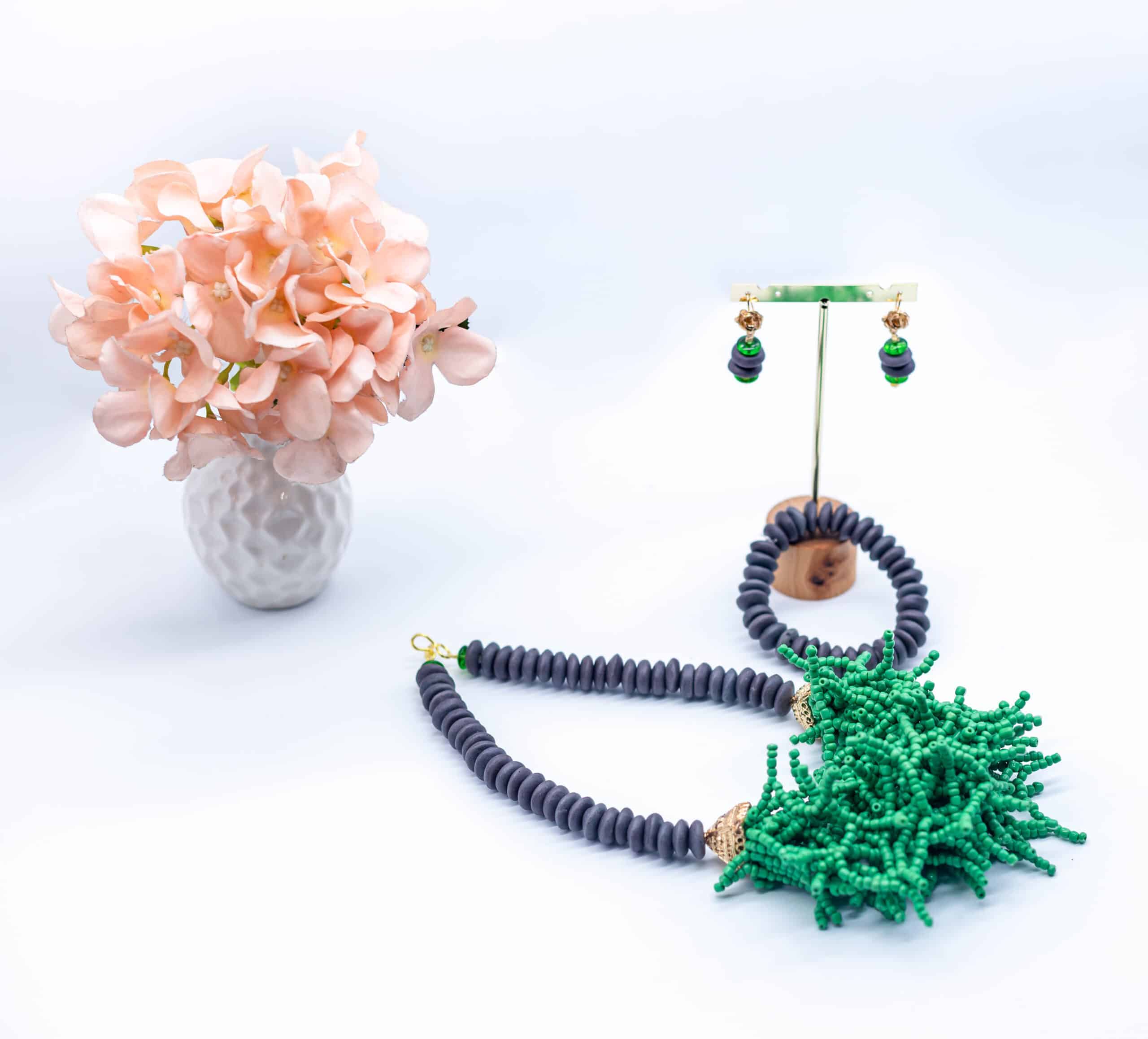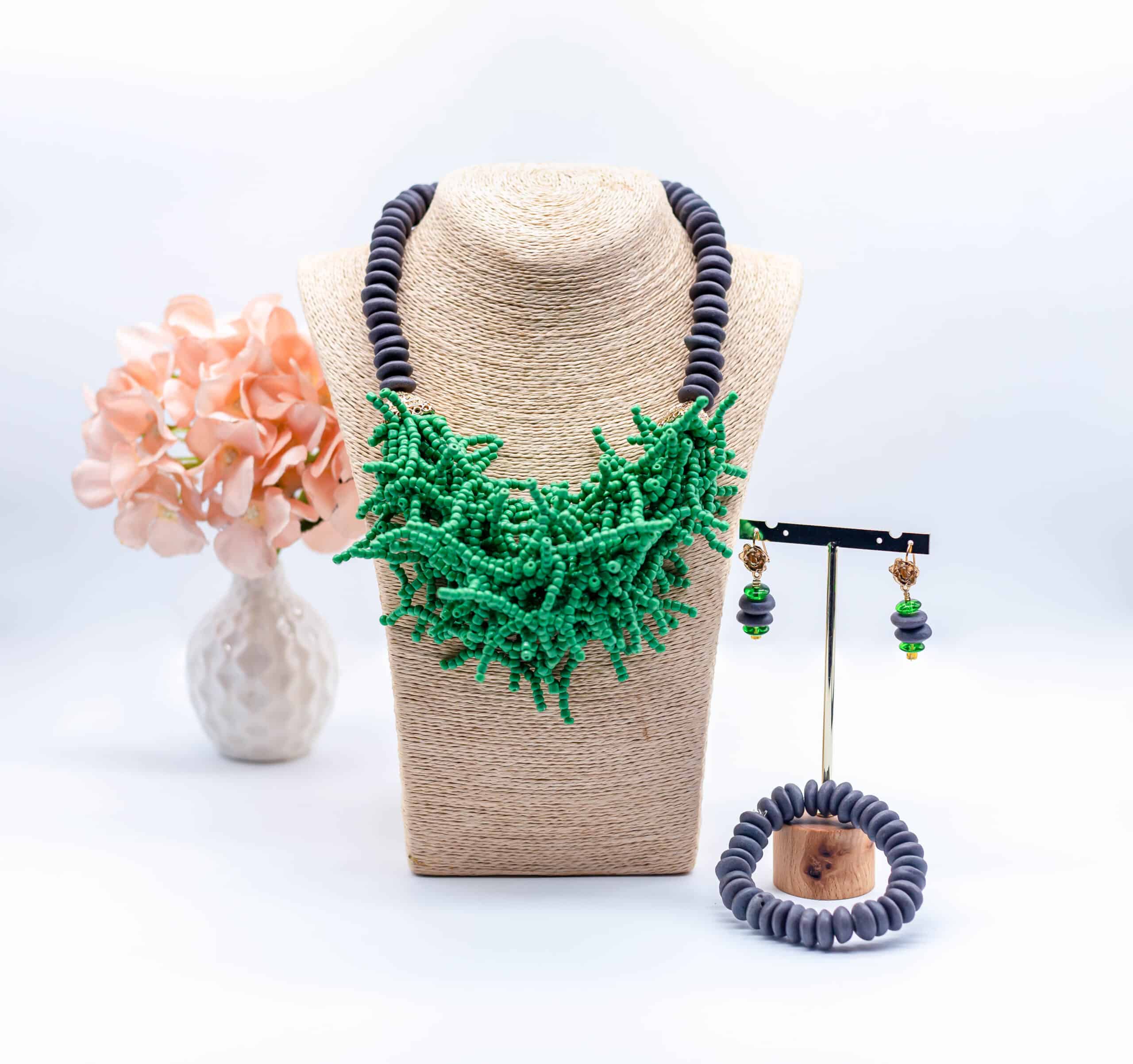 Also, if you liked this Funke Grey Stone and Bright Green Beaded Necklace Set you should check out the rest of our jewellery and accessories