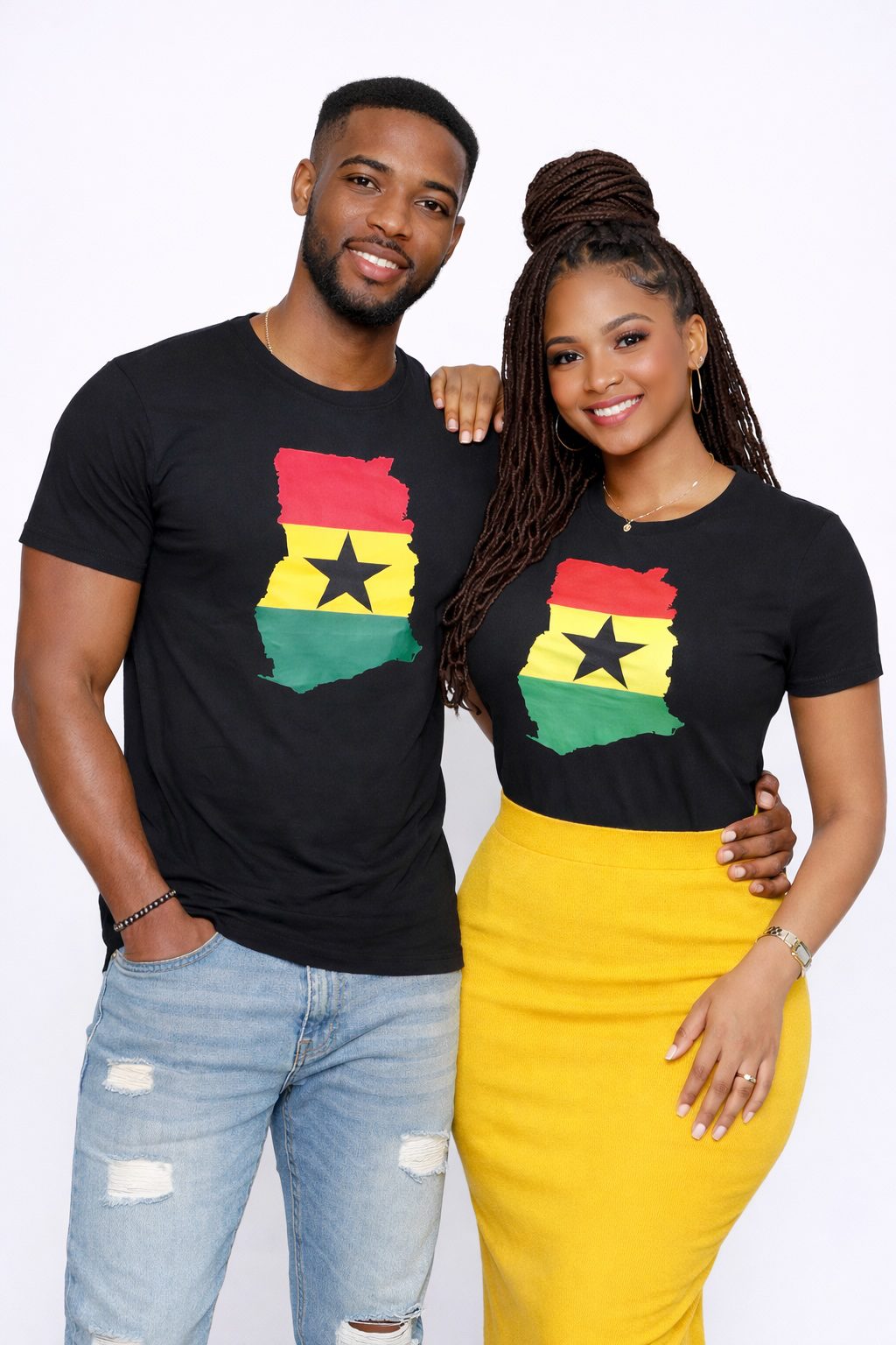 Represent your heritage in style with the Ghana Colours Country Flag Unisex Top, or explore our wide range of country-inspired tops designed to celebrate national pride with a modern edge. Simple yet powerful, these statement tees are crafted in classic black, featuring the bold flag colours and authentic outline of your chosen country printed proudly at the centre.