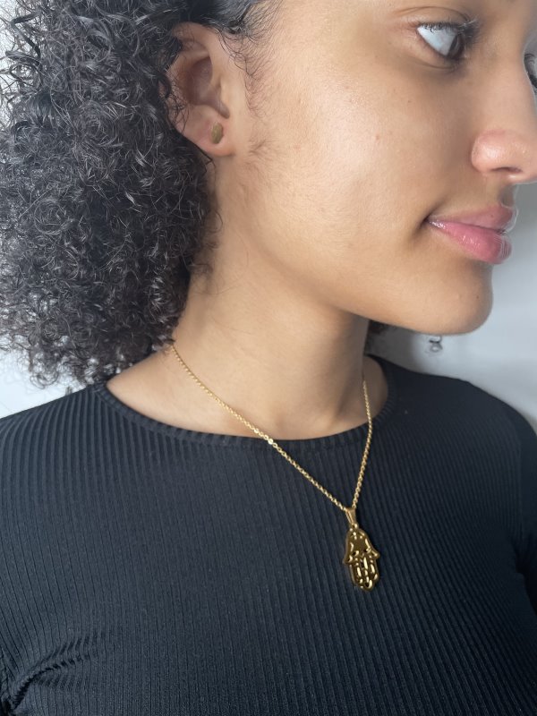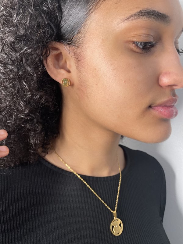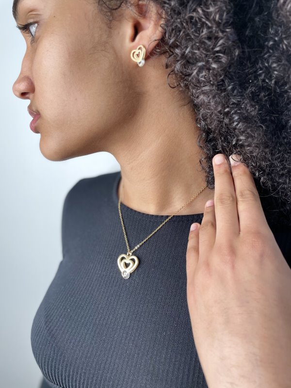 This gold coloured stainless steel necklace and earring set is a perfect match for any everyday outfit. The lightweight and refined material can be matched with many different styles of clothing.