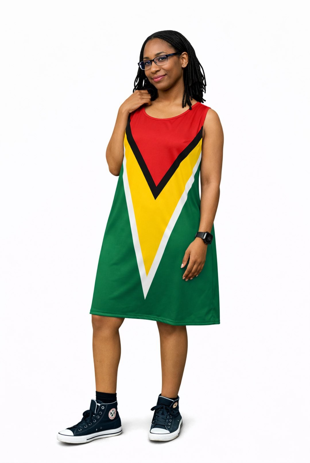 Step into bold cultural pride with the Guyana Flag Dress | Sleeveless Bodycon Dress. This striking piece is designed for women who love comfort, confidence, and heritage-inspired fashion. Inspired by the Guyana flag, it blends modern simplicity with powerful national symbolism. As a result, it makes a statement while remaining effortless to wear.
