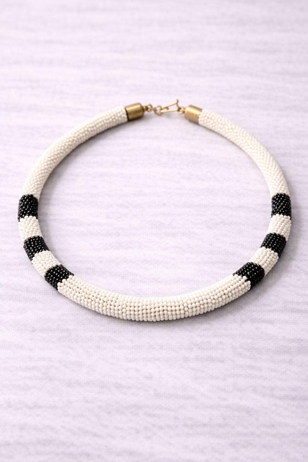 Make a confident impression with this Handcrafted Beaded Collar Necklace. The design feels bold, clean, and easy to wear. Skilled artisans carefully weave each bead to create a smooth tubular shape that sits neatly around the neck. Carefully placed colour sections add contrast and personality without overwhelming your look.