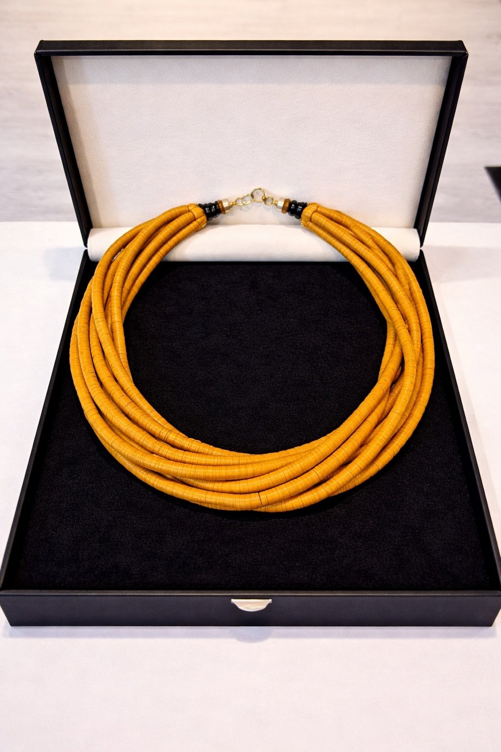 This statement necklace is designed for both beauty and comfort. It sits gracefully around the neckline, offering a secure and comfortable fit for extended wear. Because of its thoughtful construction, it feels lightweight yet substantial. You can wear it confidently for long hours without discomfort. In addition, the handcrafted beads are smoothly finished, ensuring they rest gently against the skin while maintaining their bold visual impact.