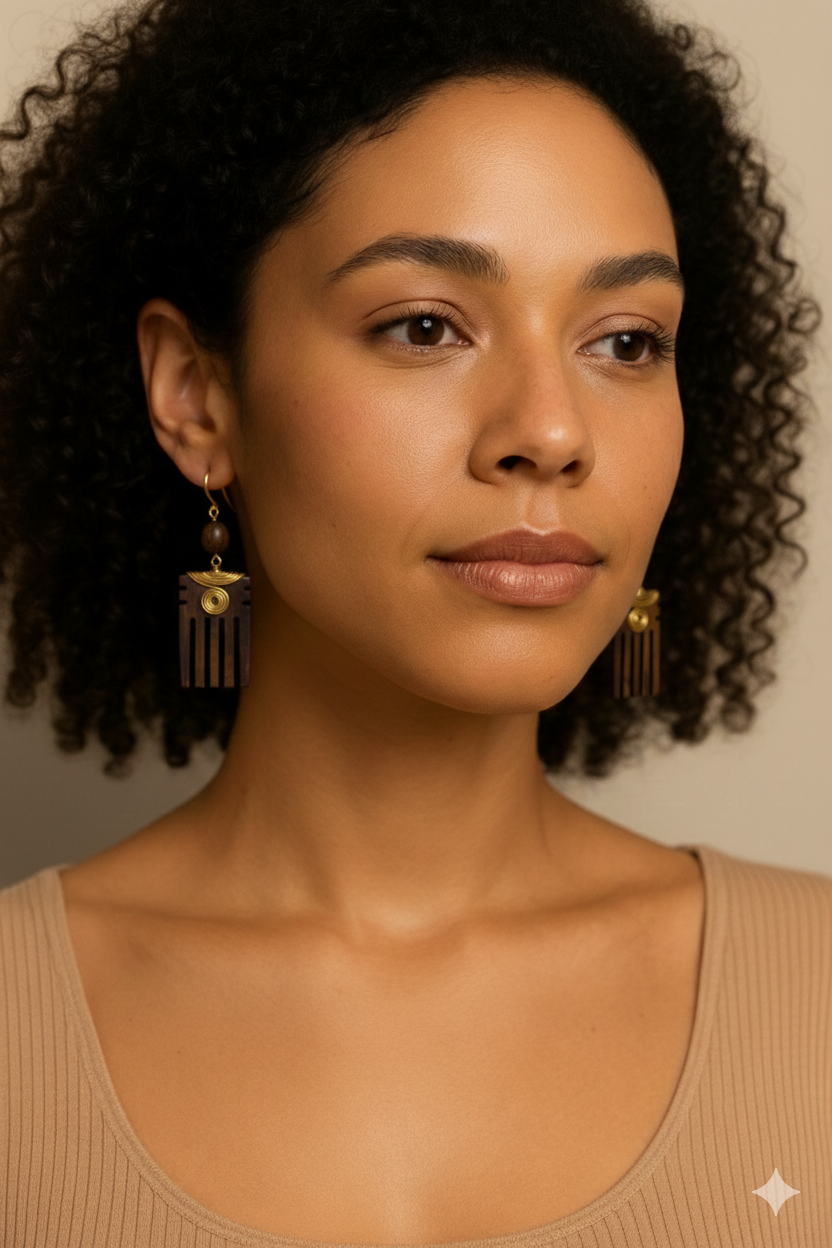 Celebrate heritage and individuality with these African tribal earrings, designed with carved wooden details and subtle metallic accents. Inspired by traditional artistry yet styled for modern fashion, these earrings offer the perfect blend of cultural depth and wearable elegance.