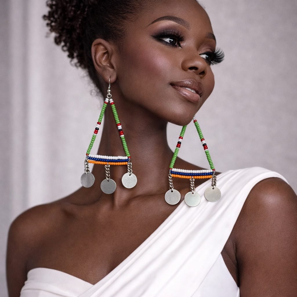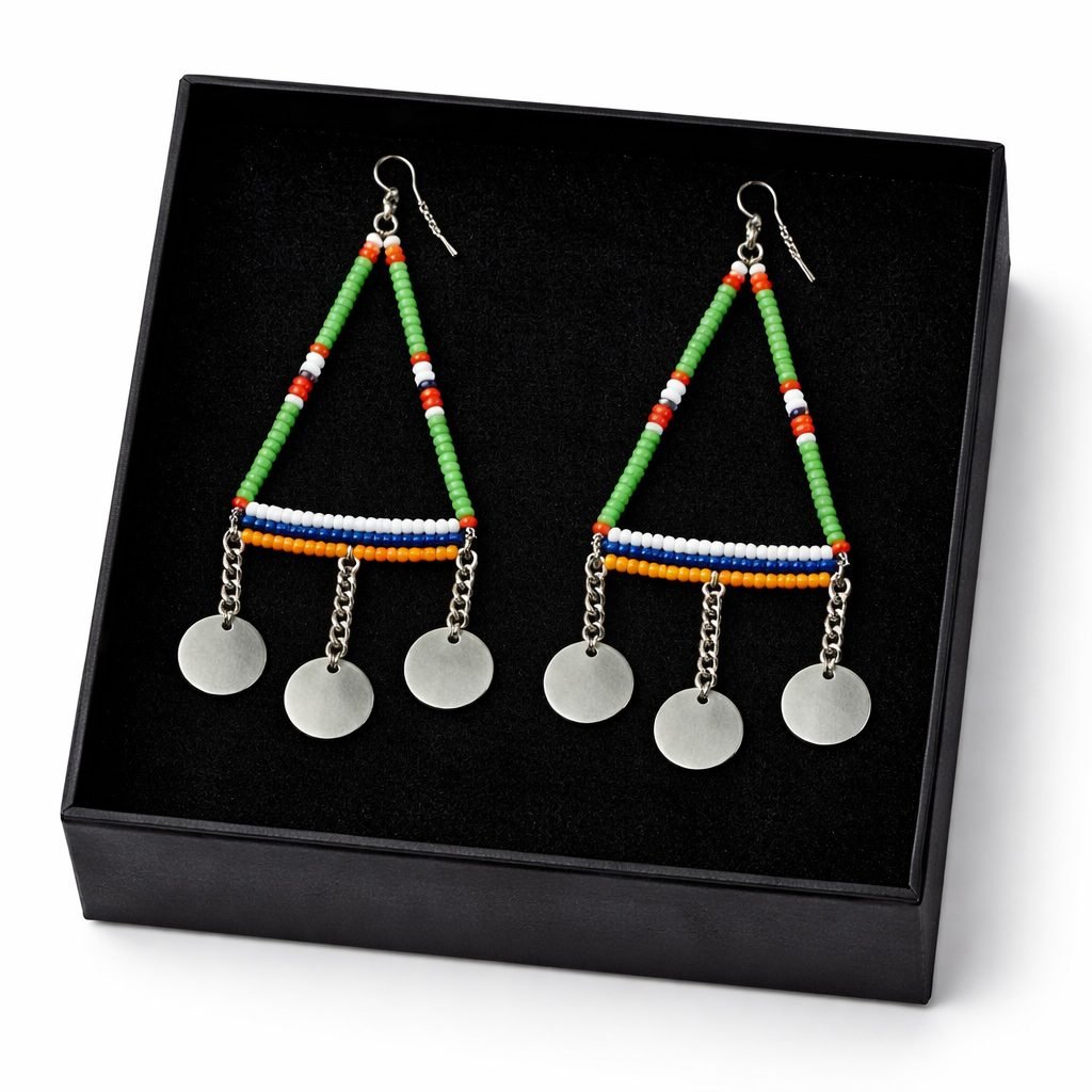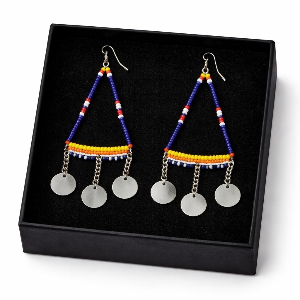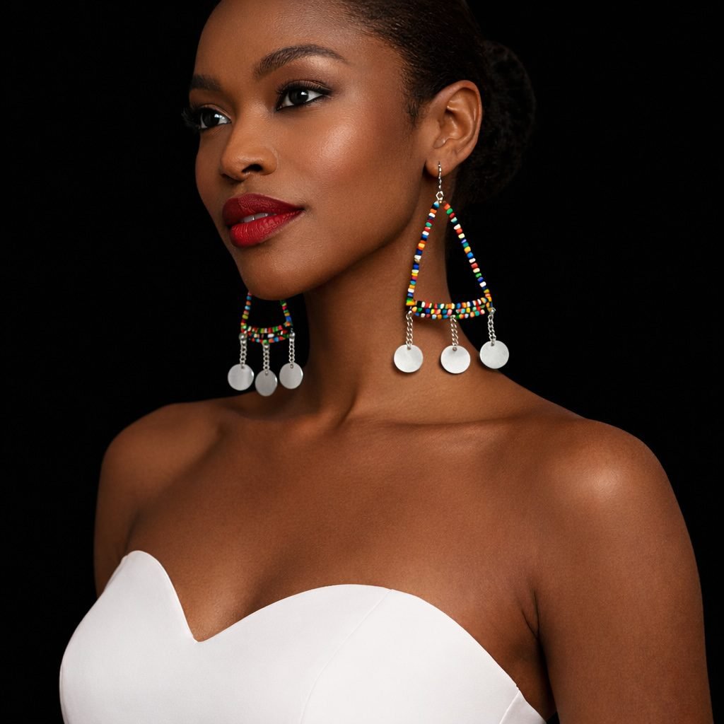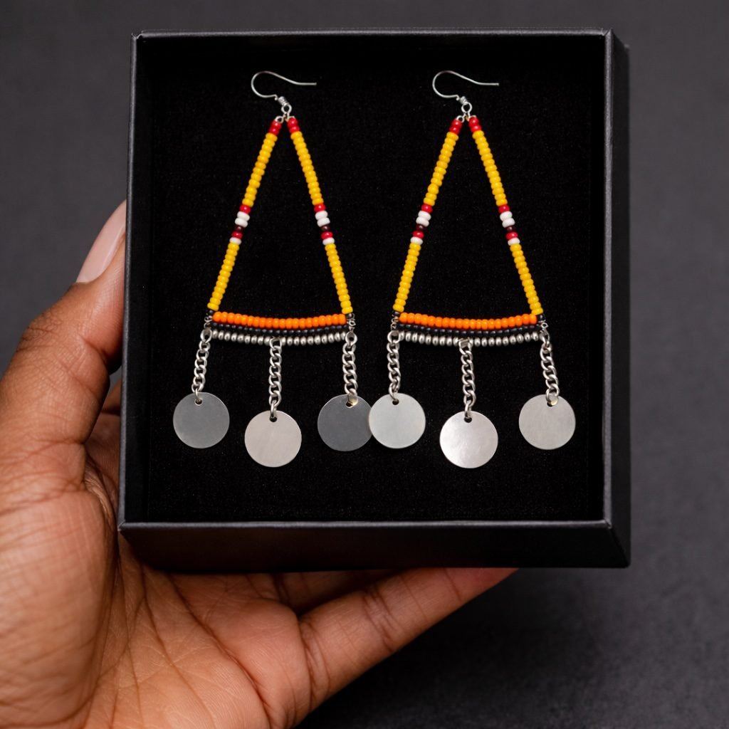 These handmade African beaded earrings are designed to stand out. The bold triangle shape gives them a clean, modern look. At the same time, the intricate beadwork reflects traditional artistry. As a result, they offer a beautiful balance between culture and contemporary style. Therefore, they are perfect for anyone who loves meaningful accessories.