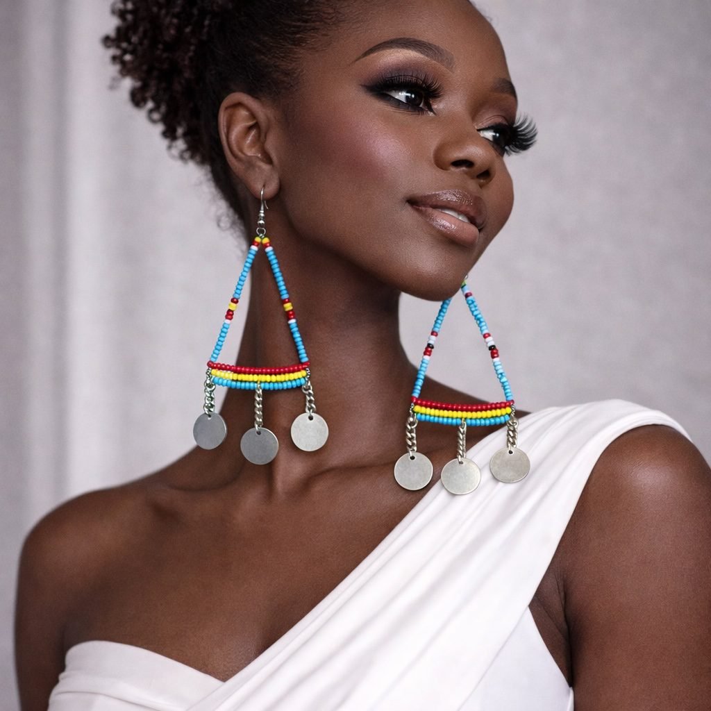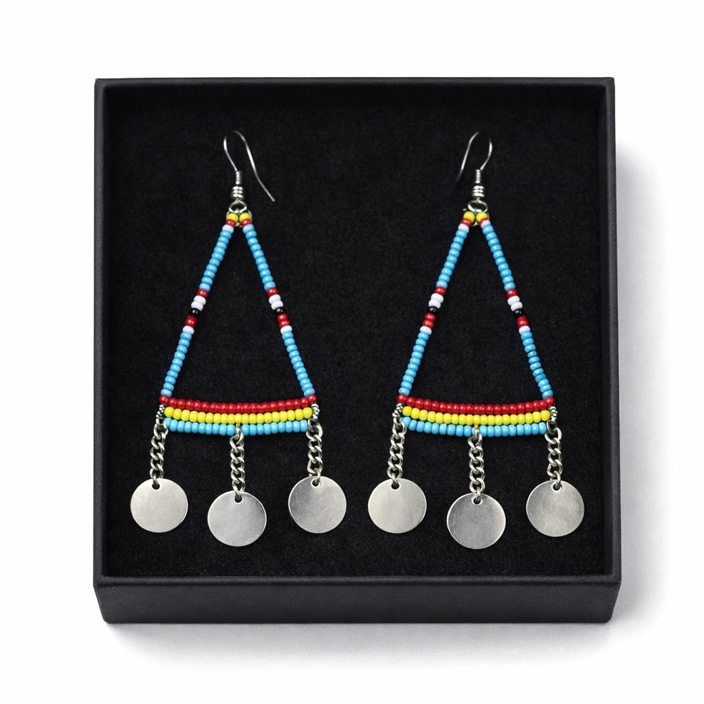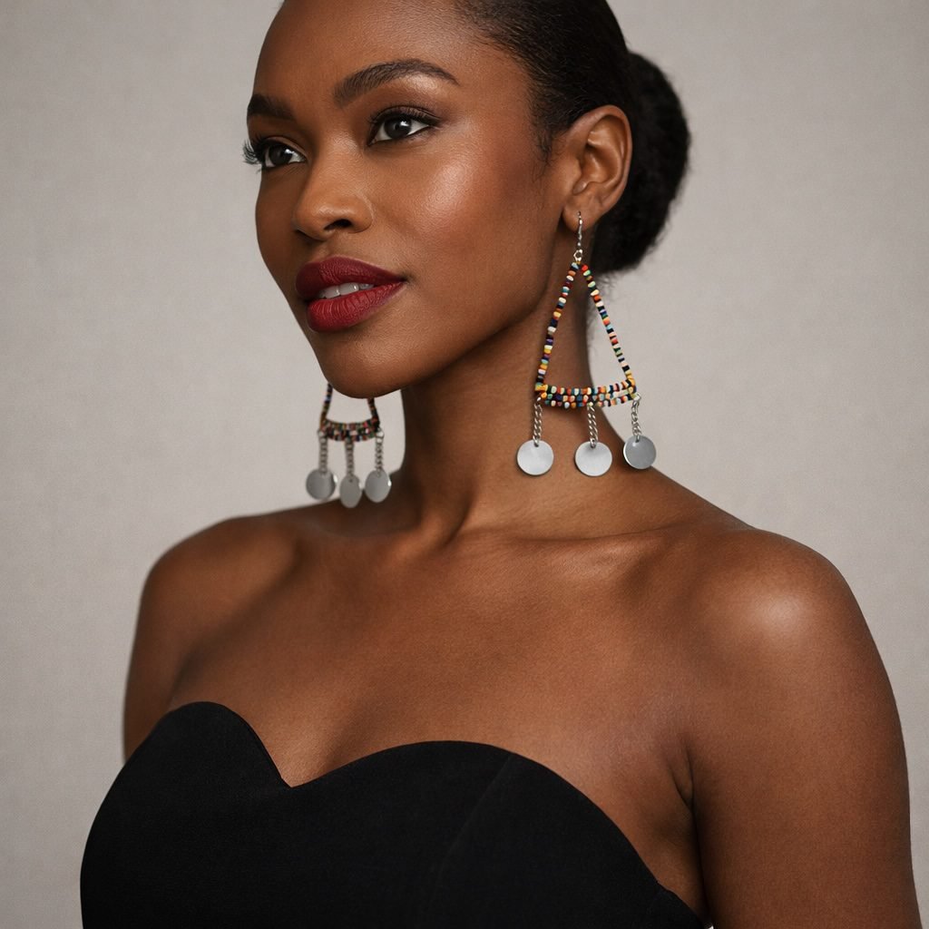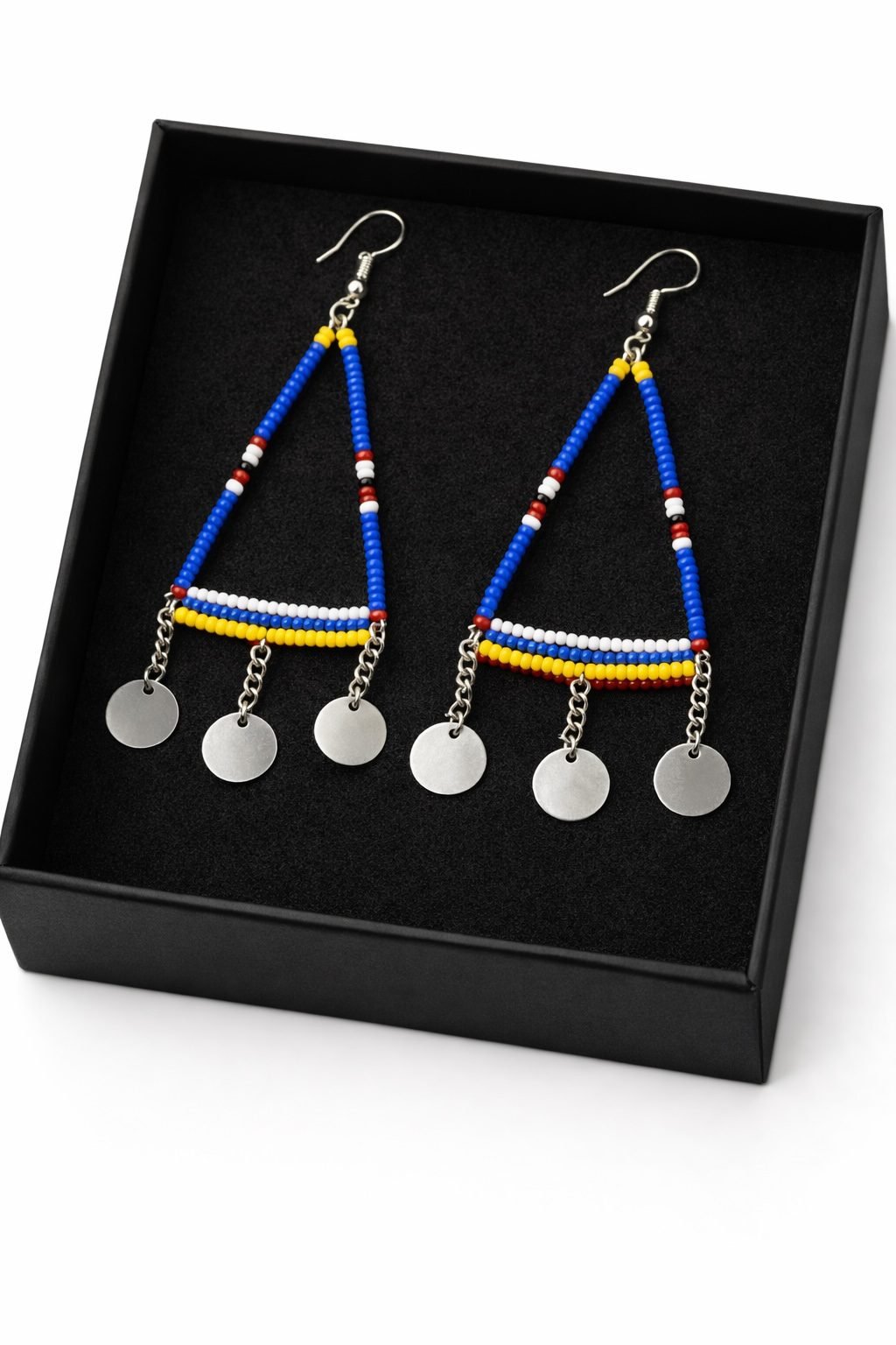 These handmade African beaded earrings are designed to stand out. The bold triangle shape gives them a clean, modern look. At the same time, the intricate beadwork reflects traditional artistry. As a result, they offer a beautiful balance between culture and contemporary style. Therefore, they are perfect for anyone who loves meaningful accessories.
