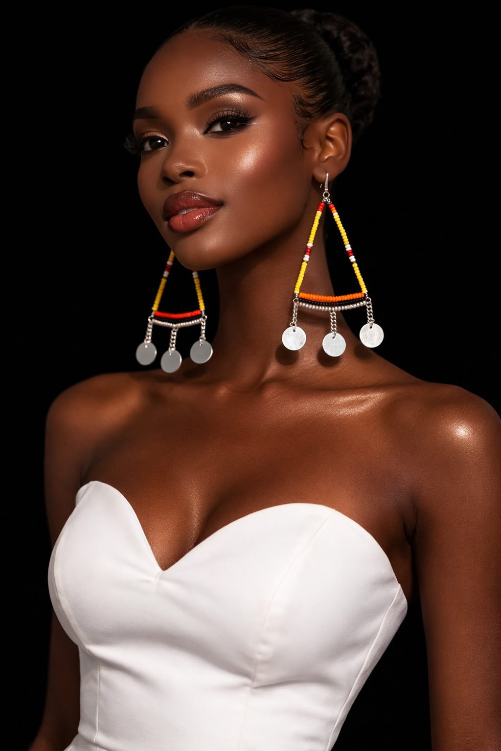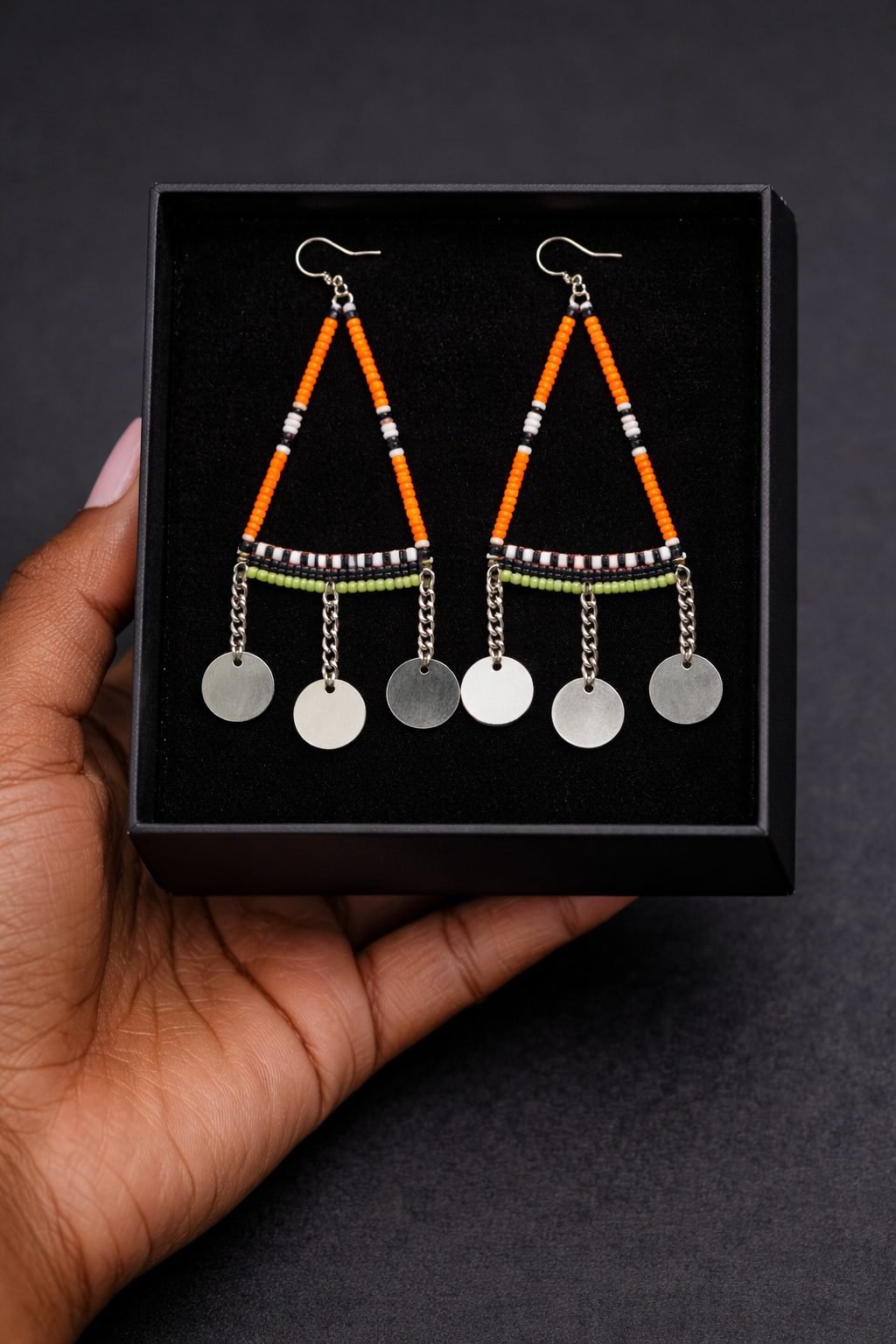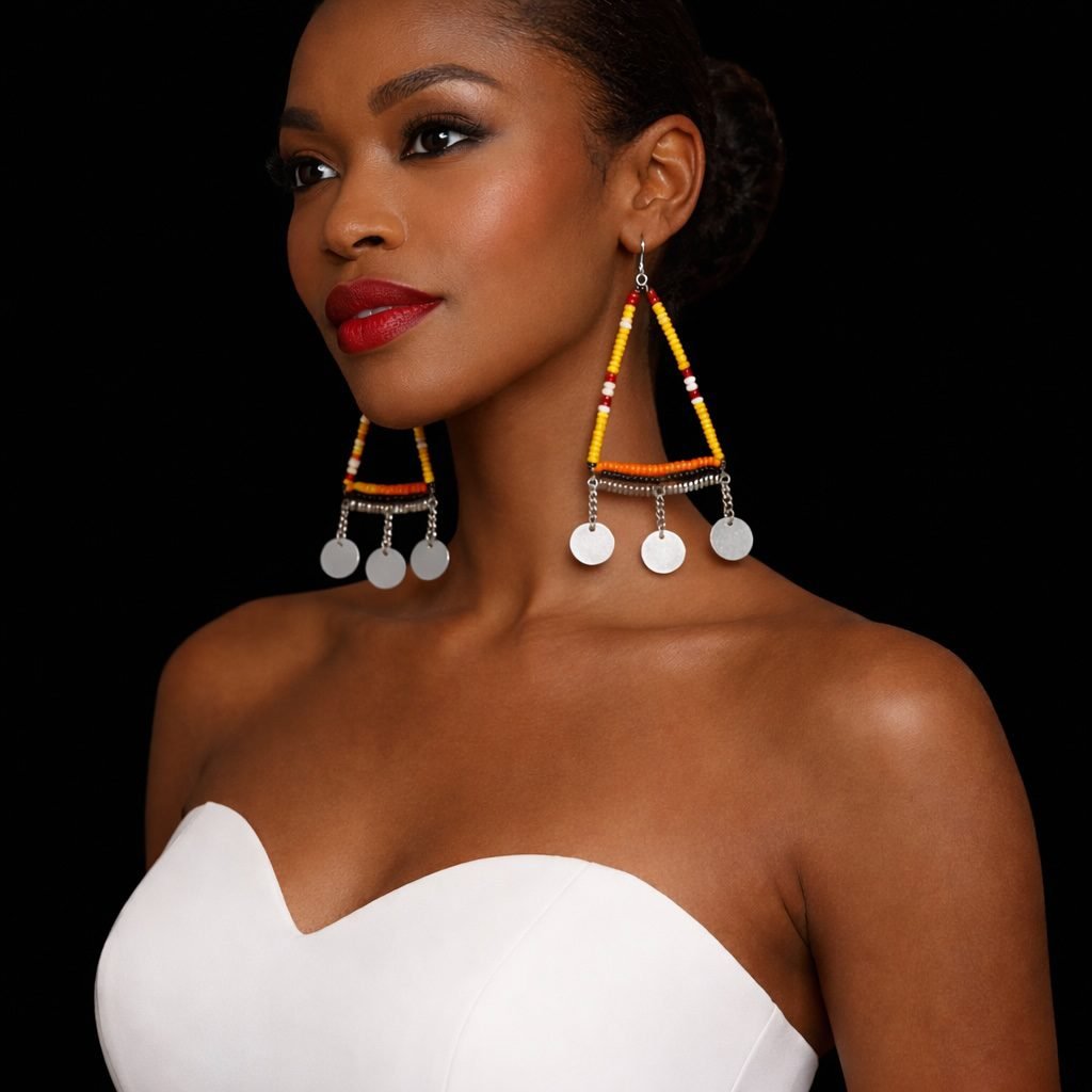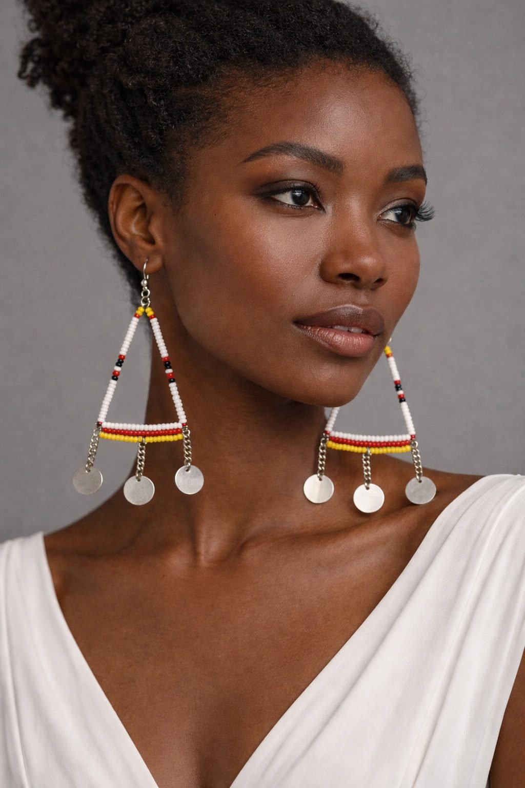 These handmade African beaded earrings are designed to stand out. The bold triangle shape gives them a clean, modern look. At the same time, the intricate beadwork reflects traditional artistry. As a result, they offer a beautiful balance between culture and contemporary style. Therefore, they are perfect for anyone who loves meaningful accessories.