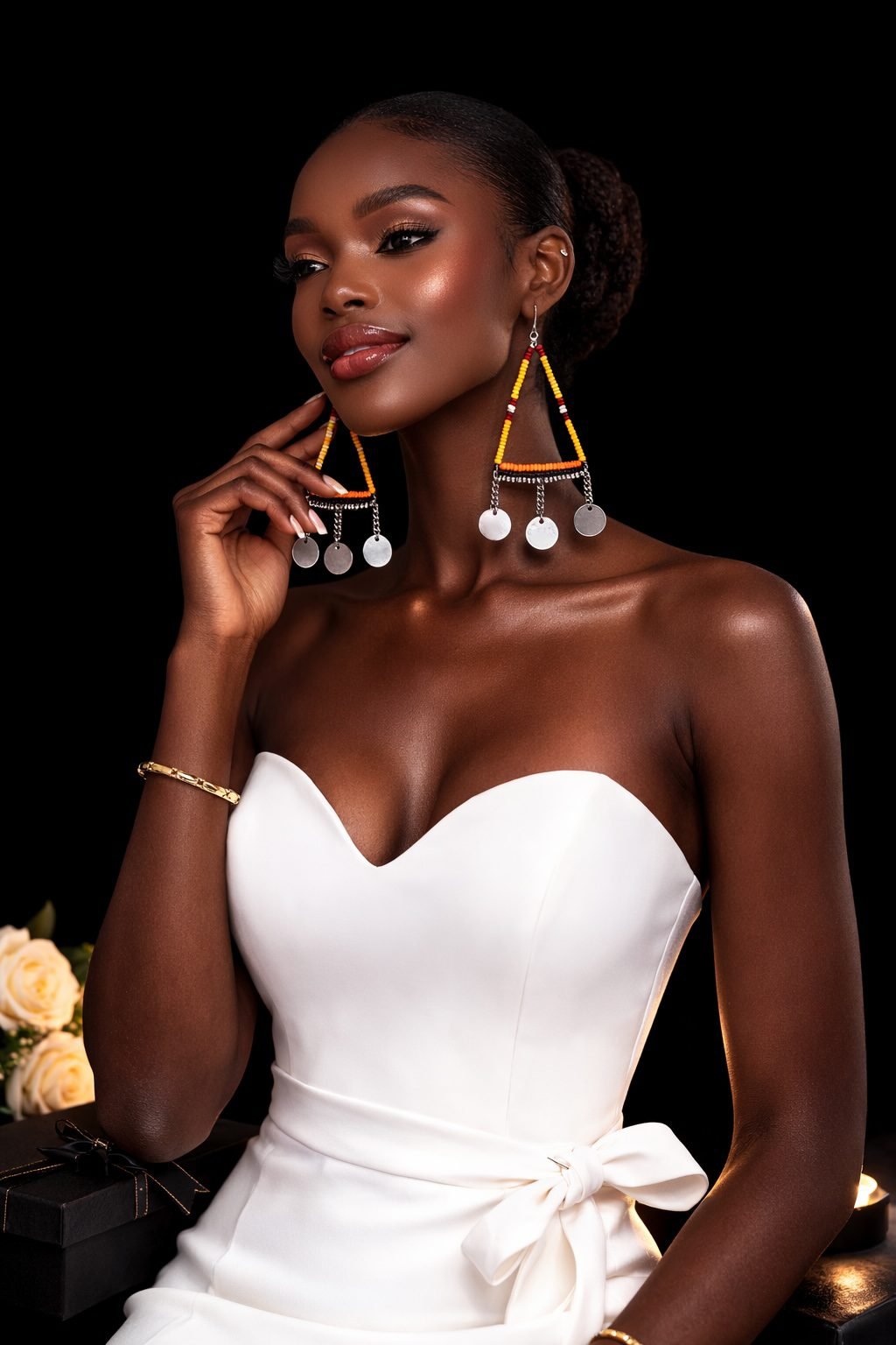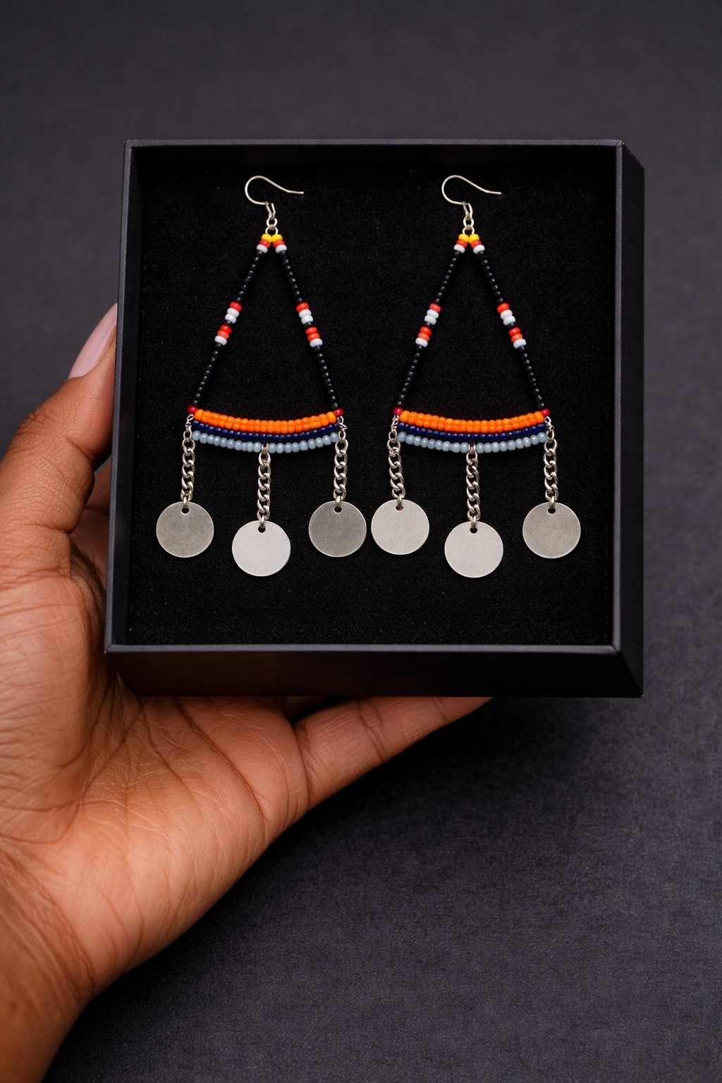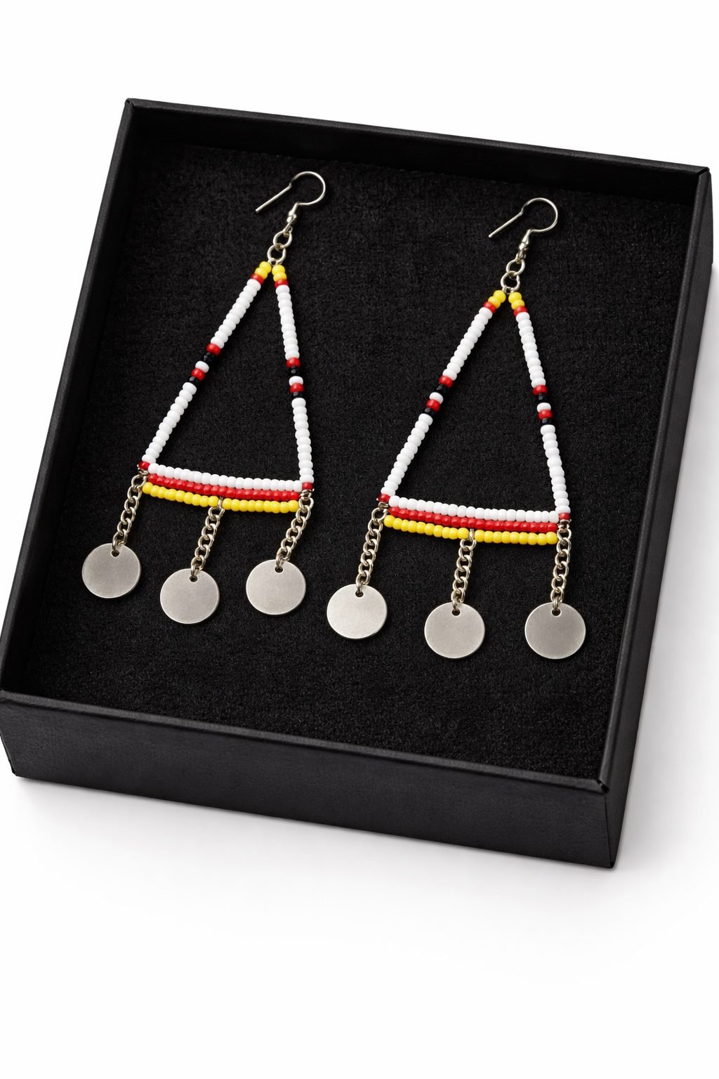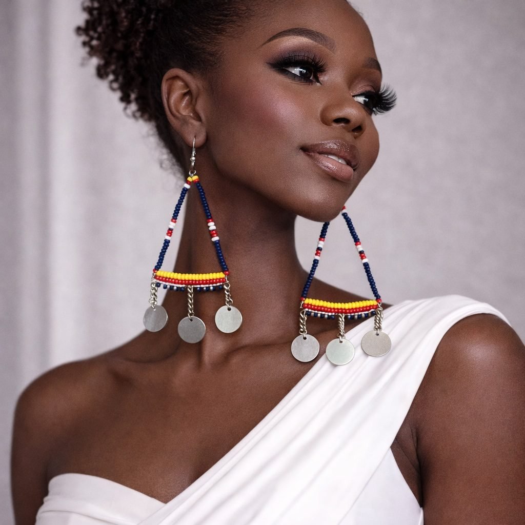 These handmade African beaded earrings are designed to stand out. The bold triangle shape gives them a clean, modern look. At the same time, the intricate beadwork reflects traditional artistry. As a result, they offer a beautiful balance between culture and contemporary style. Therefore, they are perfect for anyone who loves meaningful accessories.