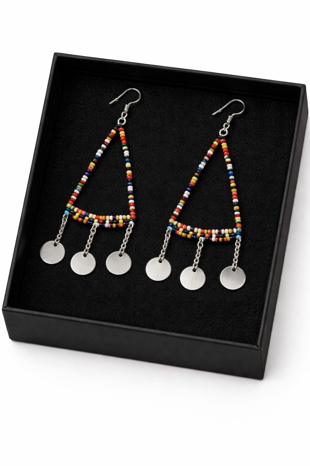 Each pair is individually crafted using small, high-quality seed beads. Because of this, the pattern appears neat, structured, and eye-catching. In addition, the strong threadwork keeps the design secure while remaining lightweight.